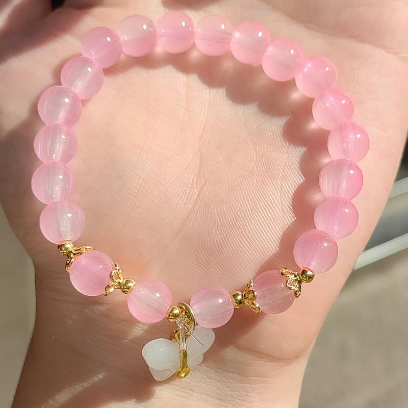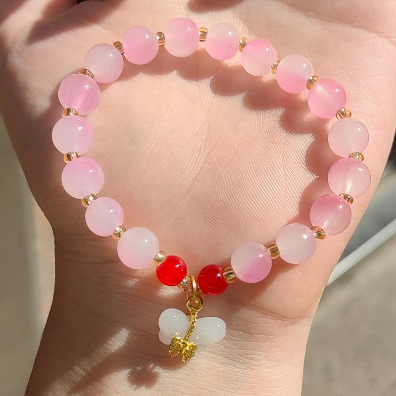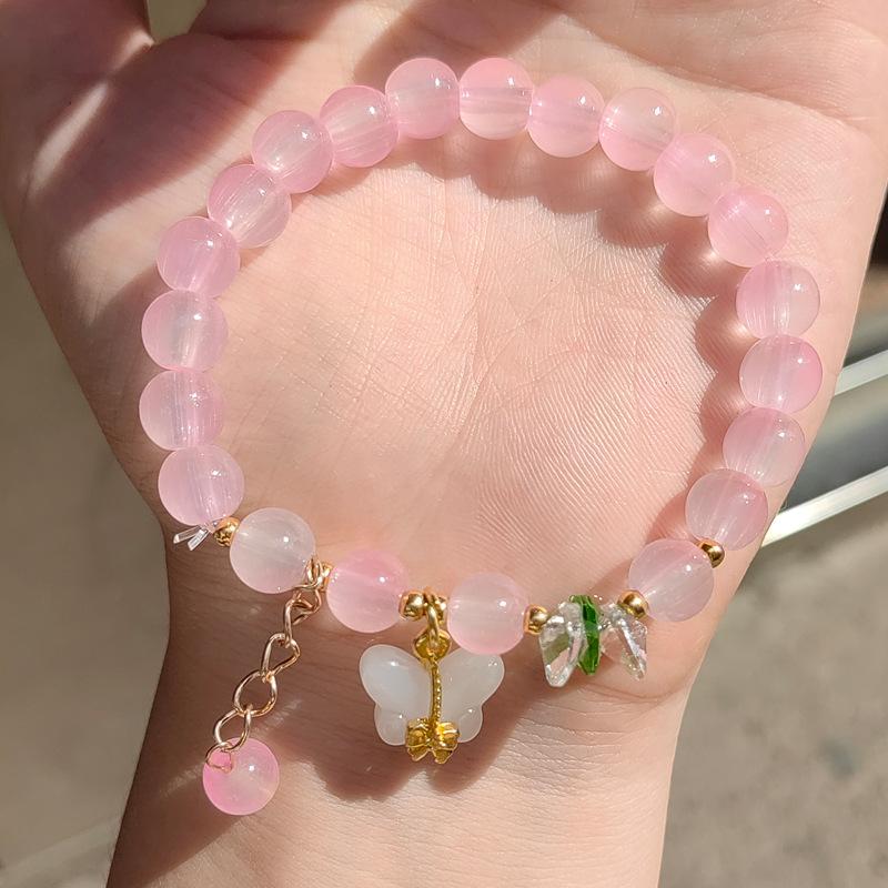 Compra Nueva pulsera de mariposa de cristal de hielo estudiante novia tienda en línea en vivo Caliente Caramelo pulsera de cuentas de vidrio bicolor al por mayor en Joom.pro