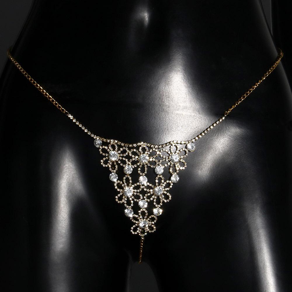 Cadena de ropa interior sexy de bikini popular europea y americana para fiesta, cadena corporal con flores súper brillantes, accesorios para mujer, cadena corporal