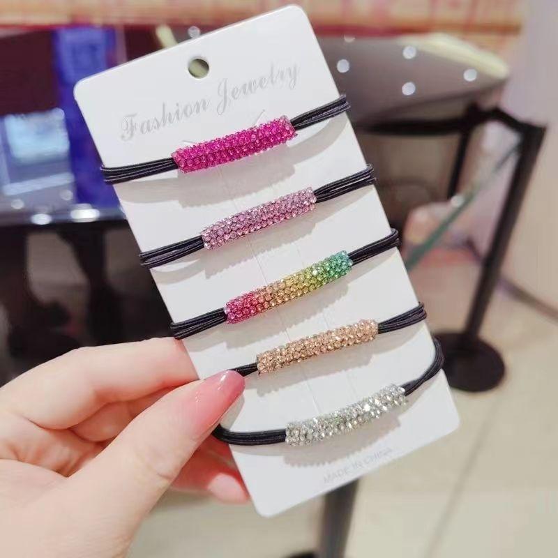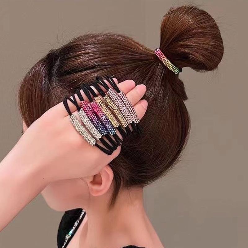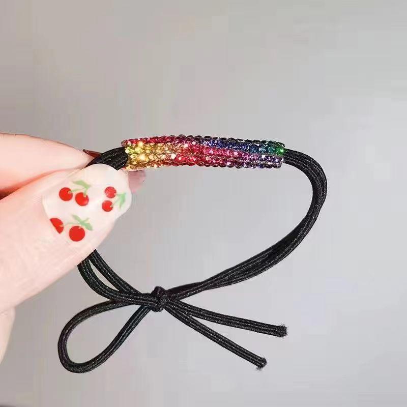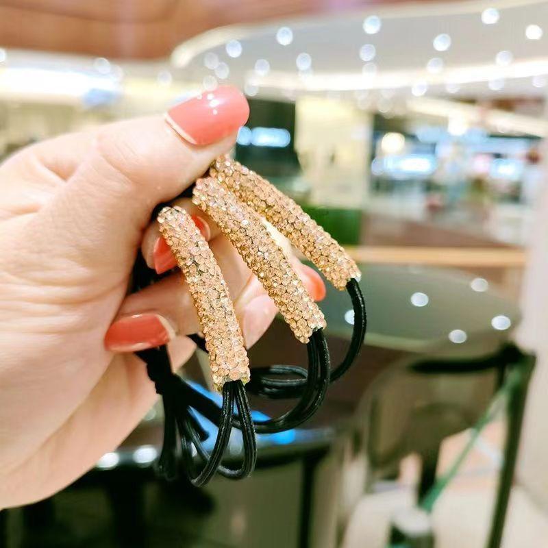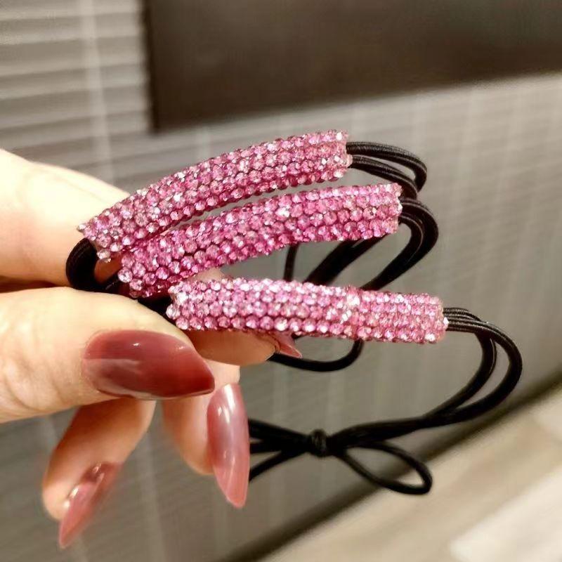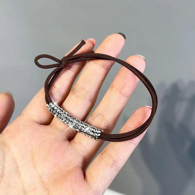 Banda para el cabello estilo coreano con cuerda de taladro de agua súper brillante, sensación avanzada, banda de goma, alta elasticidad, duradera, con cola de pago, cuerda para el cabello, tocado