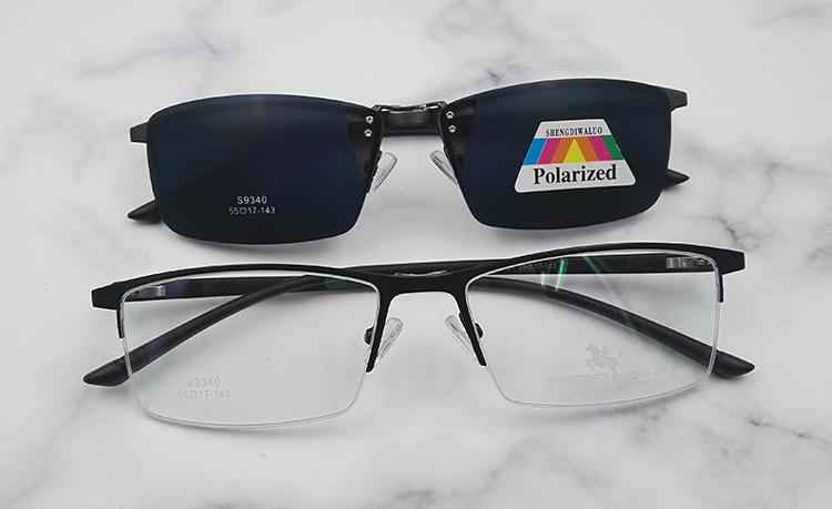 Gafas de sol magnéticas de doble propósito con montura metálica para miopía, gafas de sol polarizadas de media montura para hombres de negocios con clip para montura
