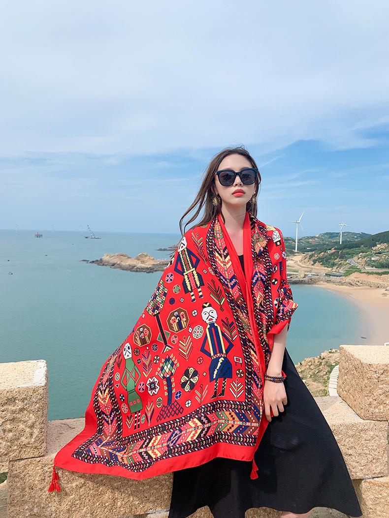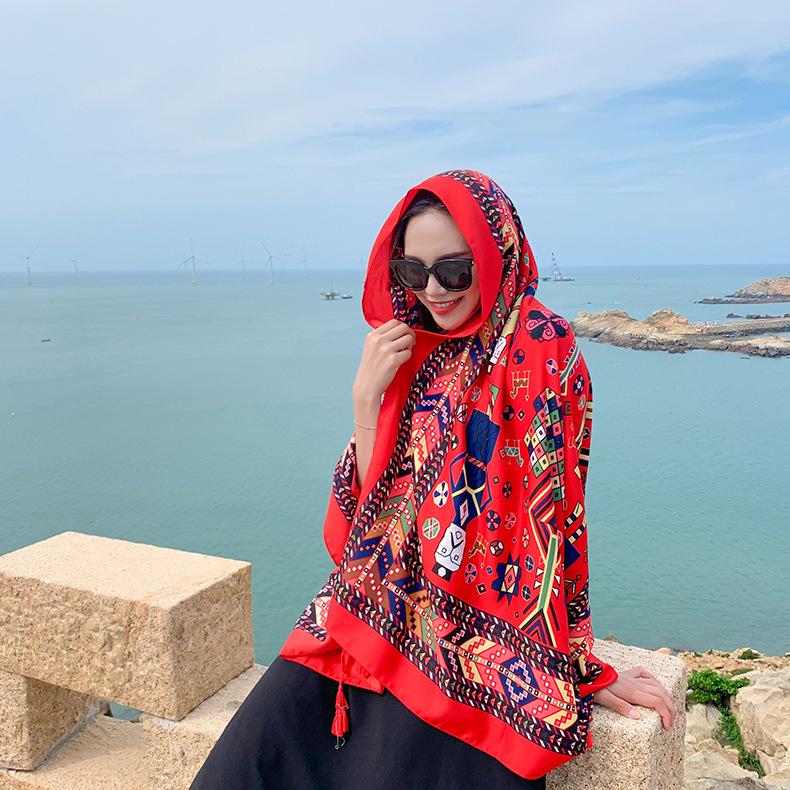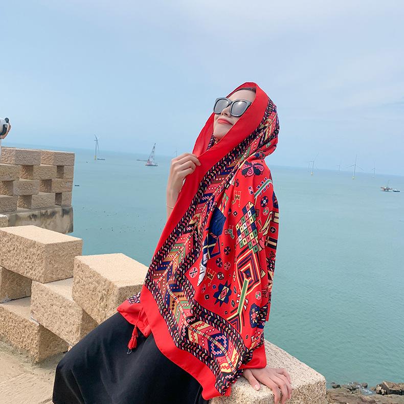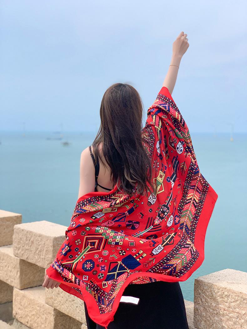 Toalla de Playa Parasol de Verano Chal para Mujer Bufanda de Seda Estilo Étnico Bohemio Chal Bufanda para Exterior Elegante