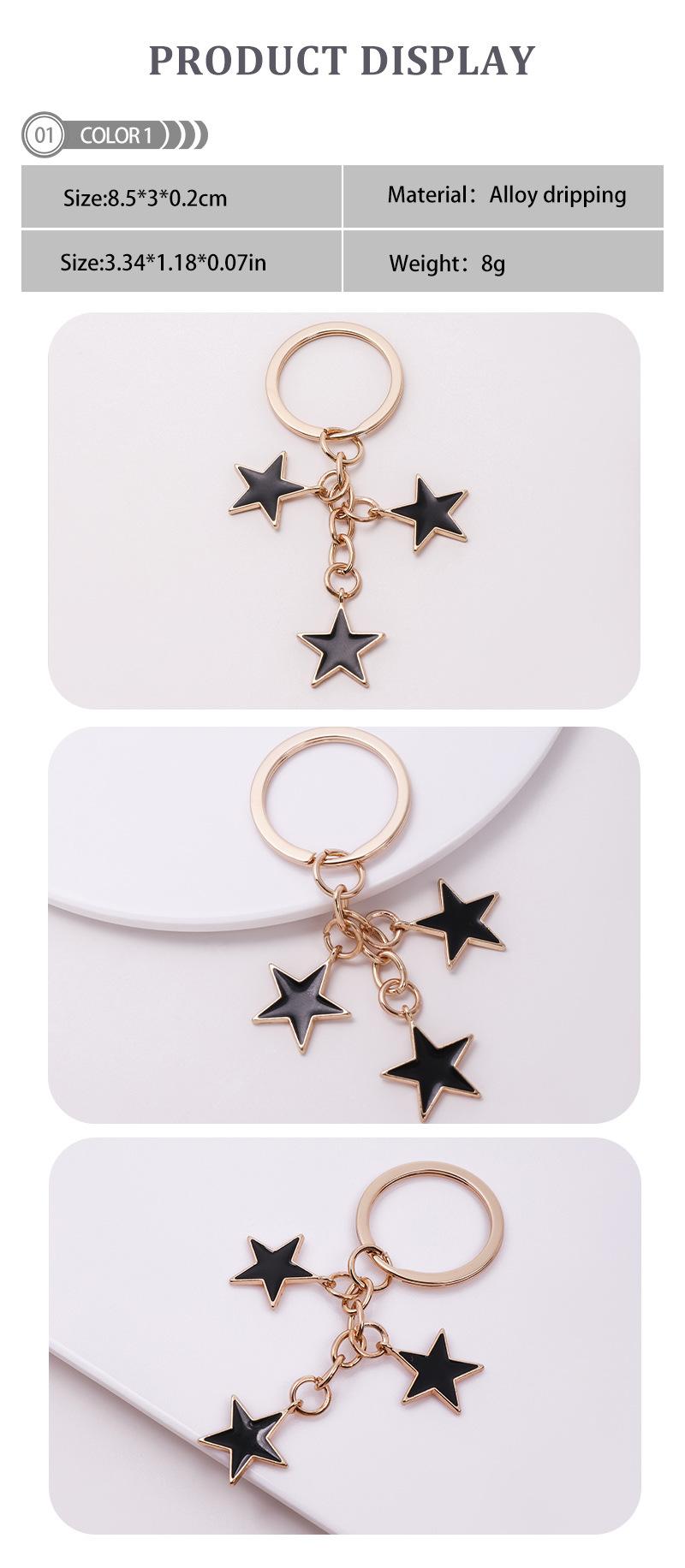 Llavero con forma de estrella de cinco puntas, diseño sencillo, ideal como bolso de mano o mochila escolar, con colgante y adornos.
