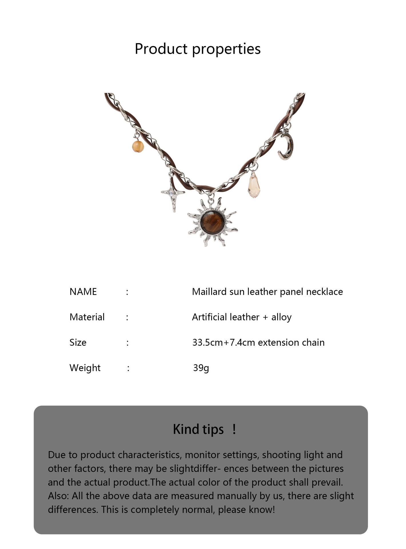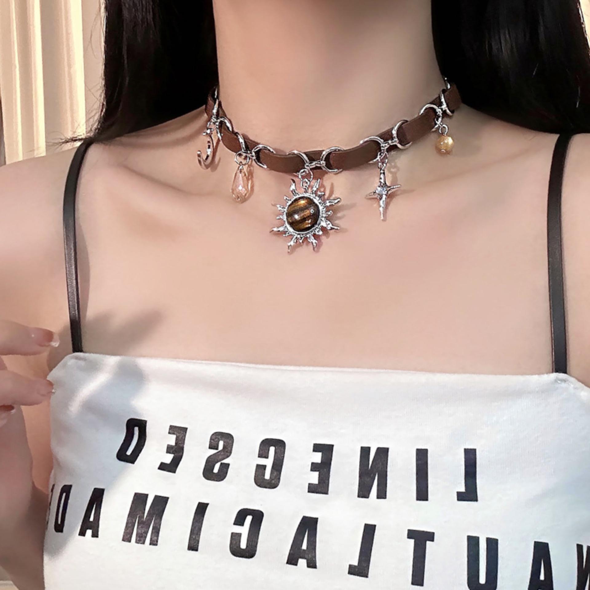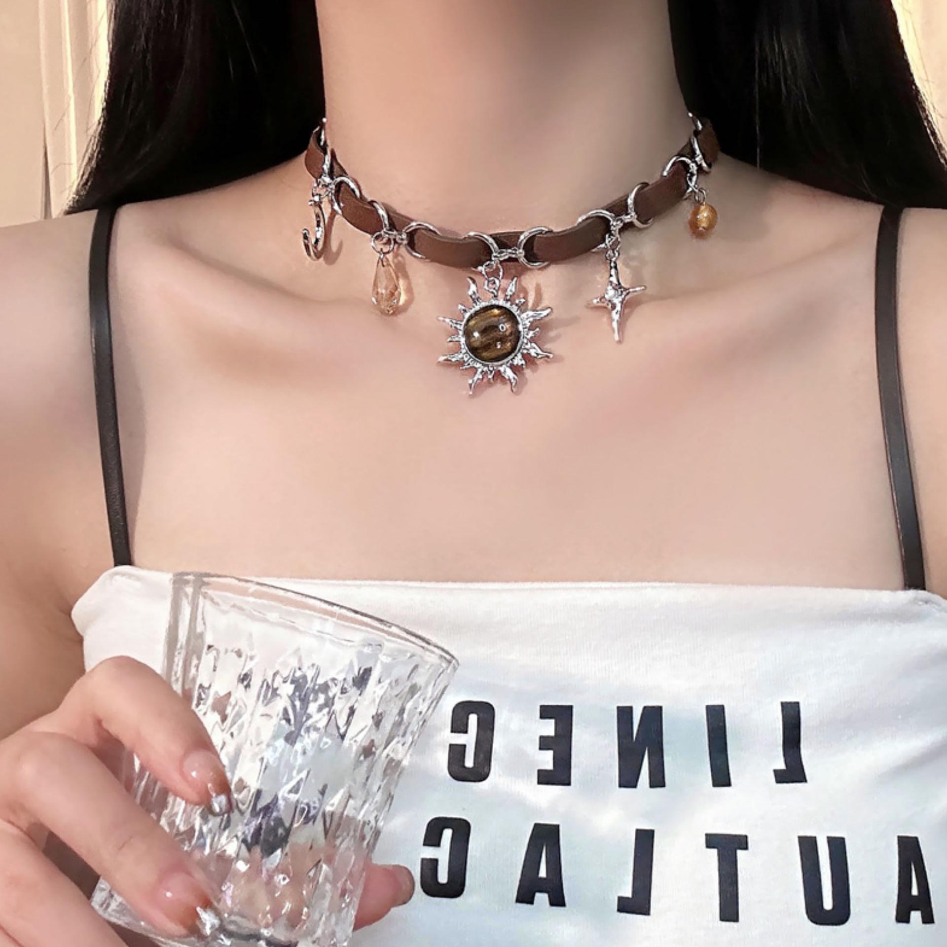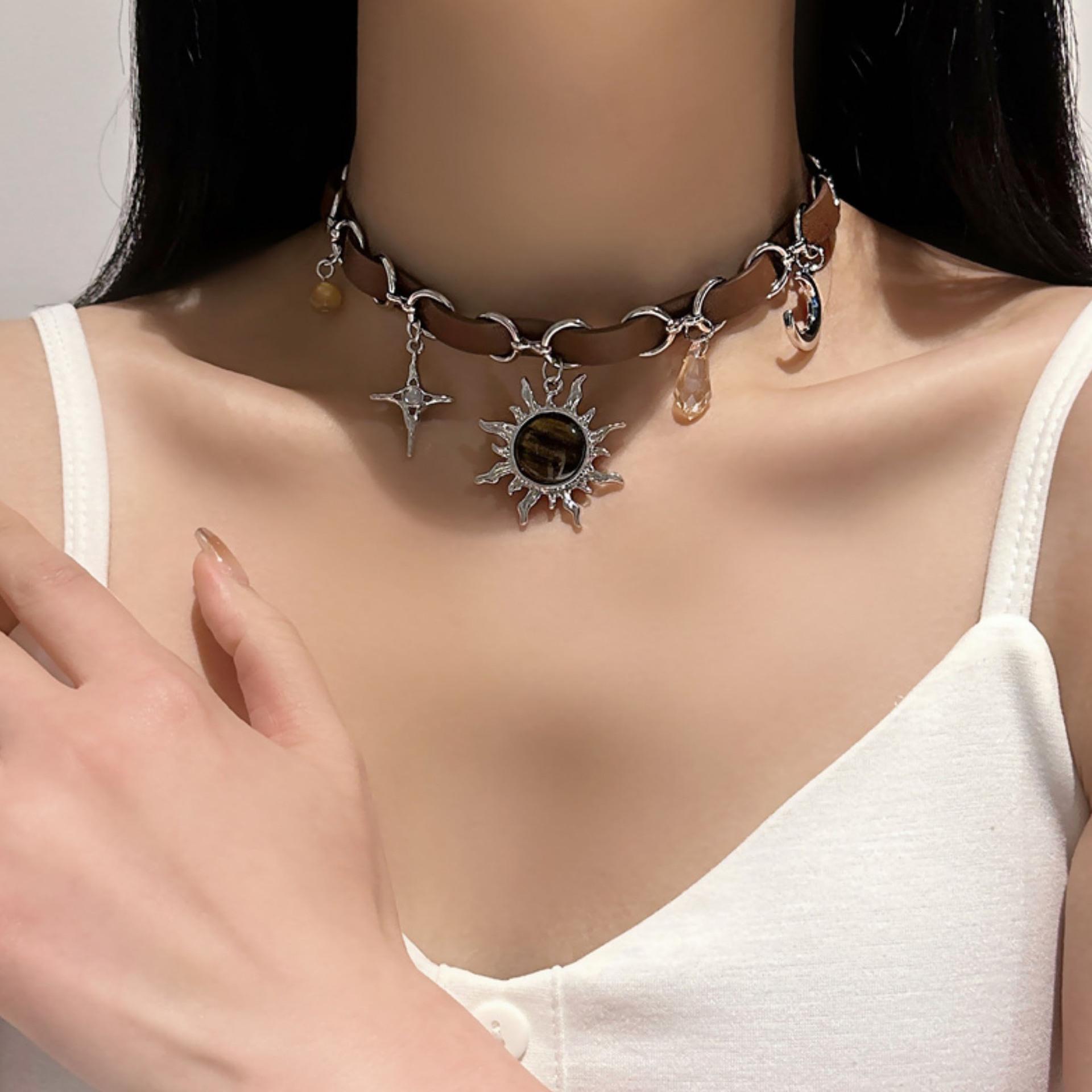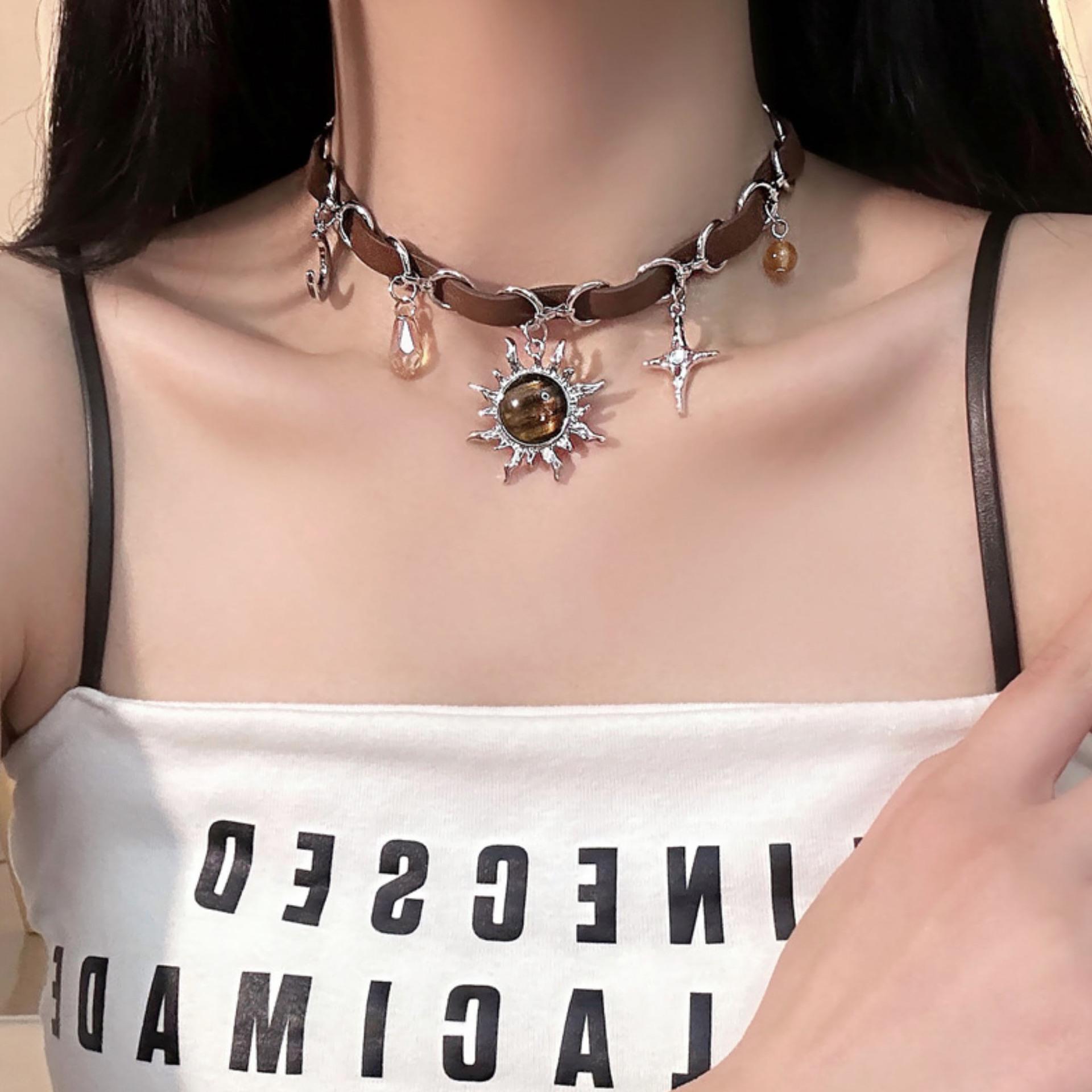 Gargantilla con colgante de sol Maillard para mujer, collar de retazos de cuero, accesorios para el cuello, cadena de clavícula vintage