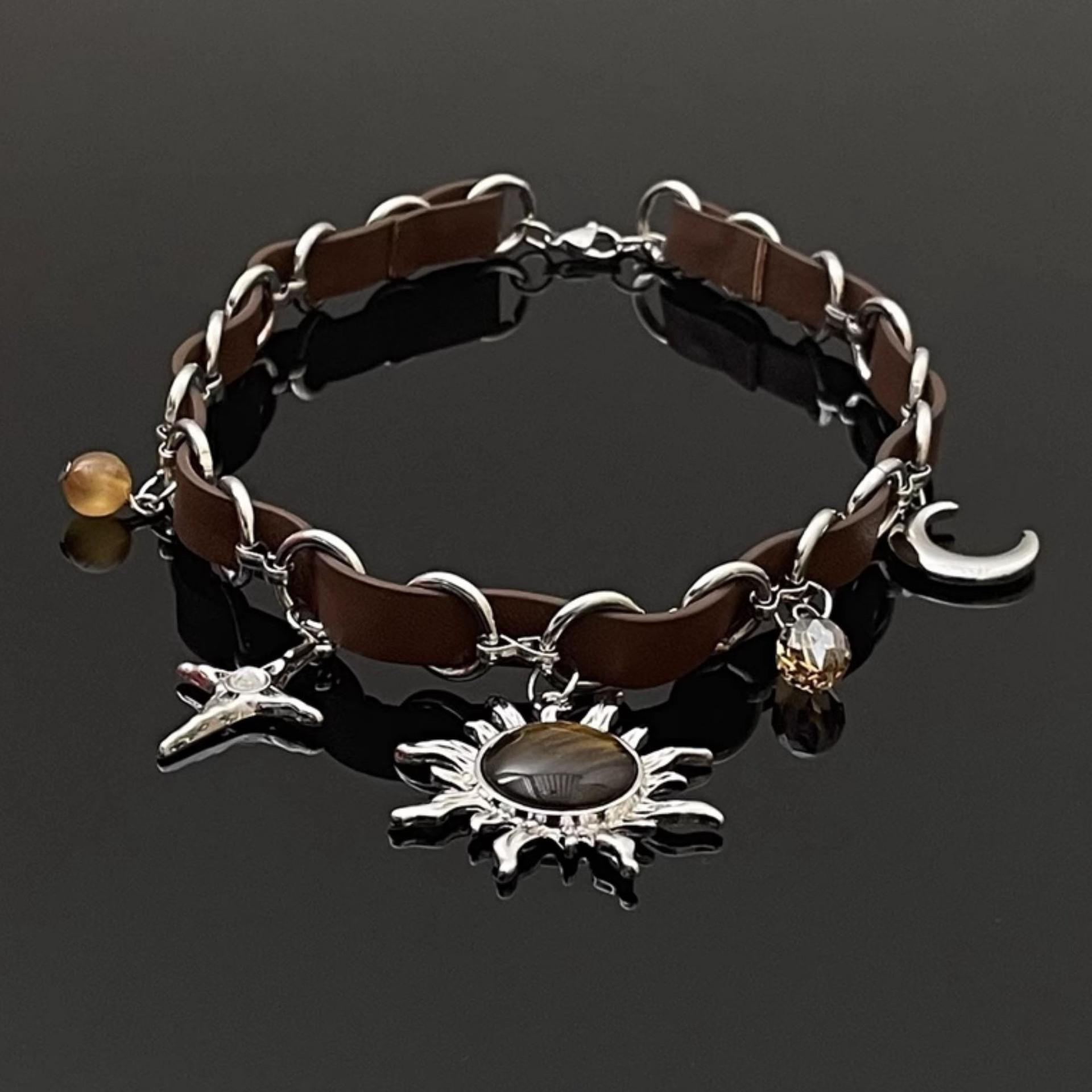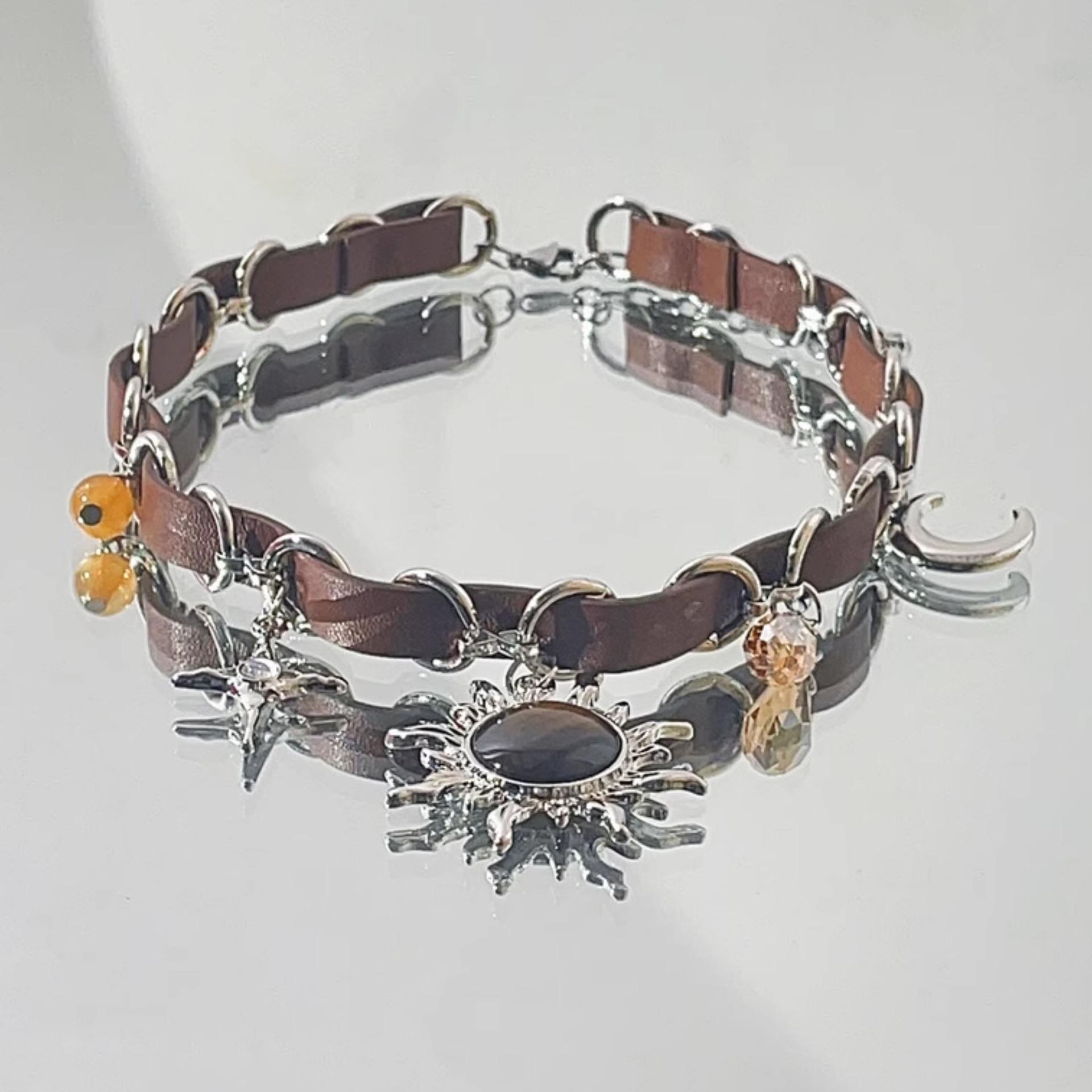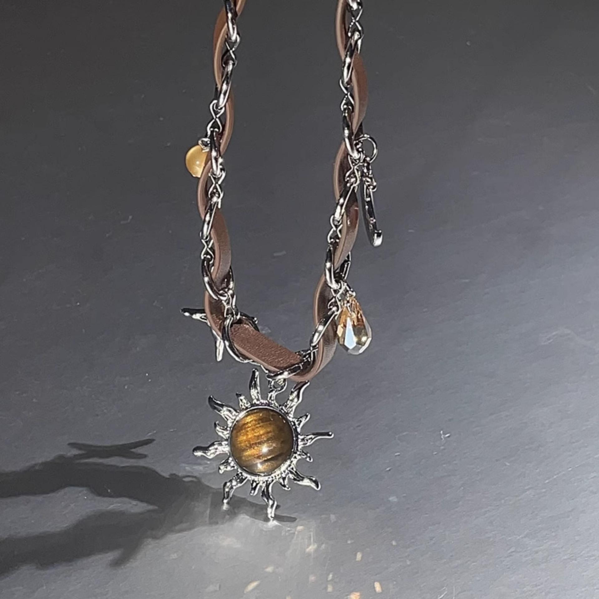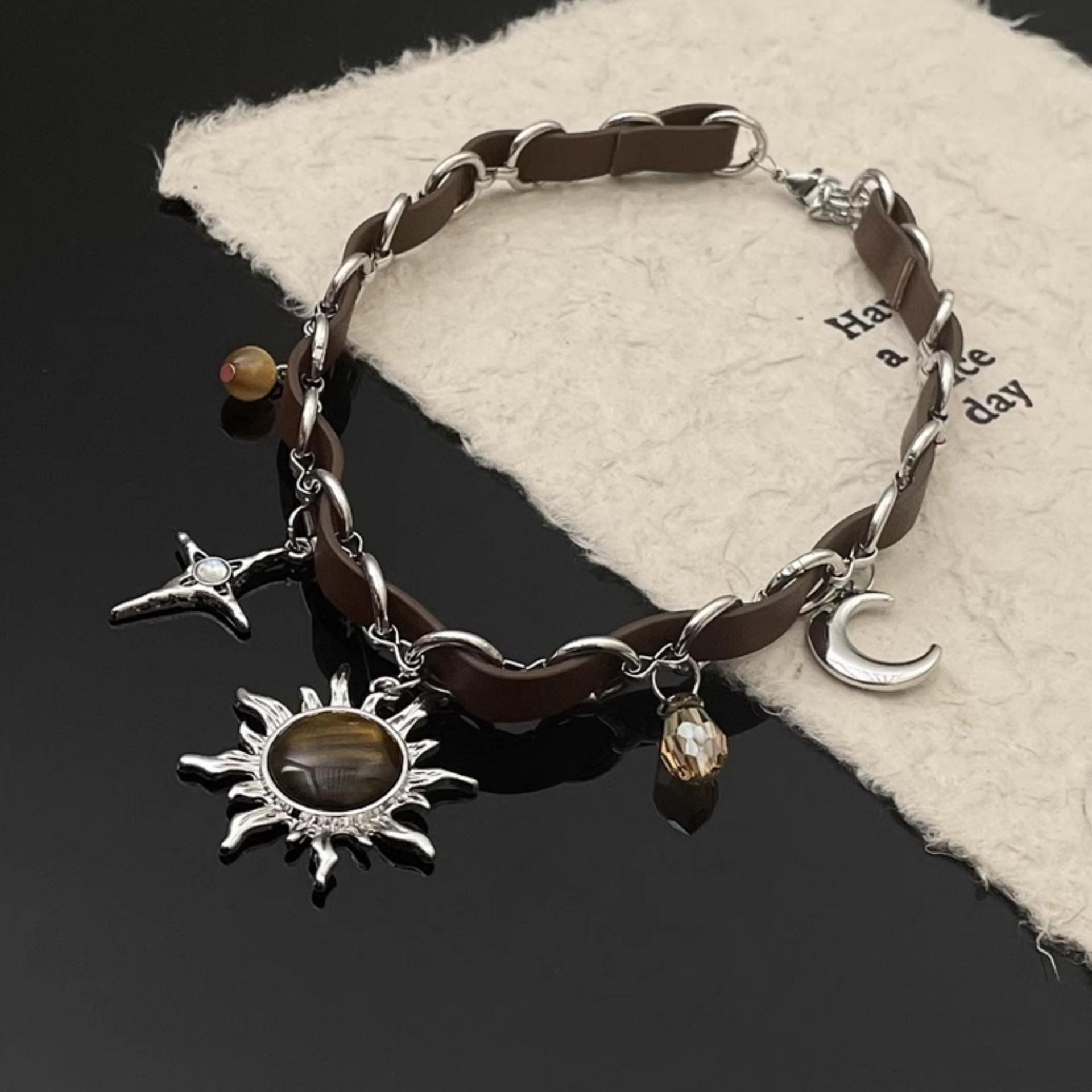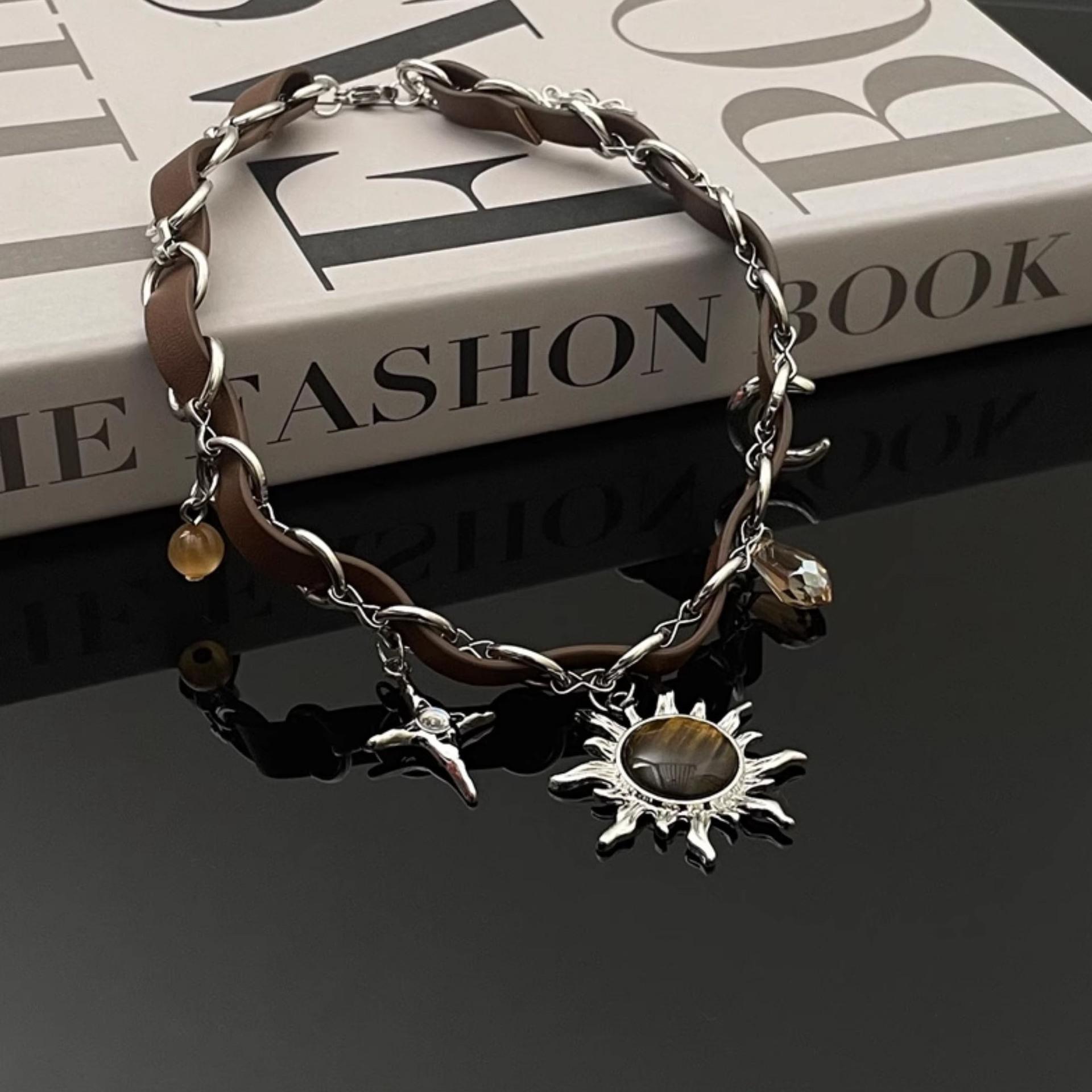 Gargantilla con colgante de sol Maillard para mujer, collar de retazos de cuero, accesorios para el cuello, cadena de clavícula vintage