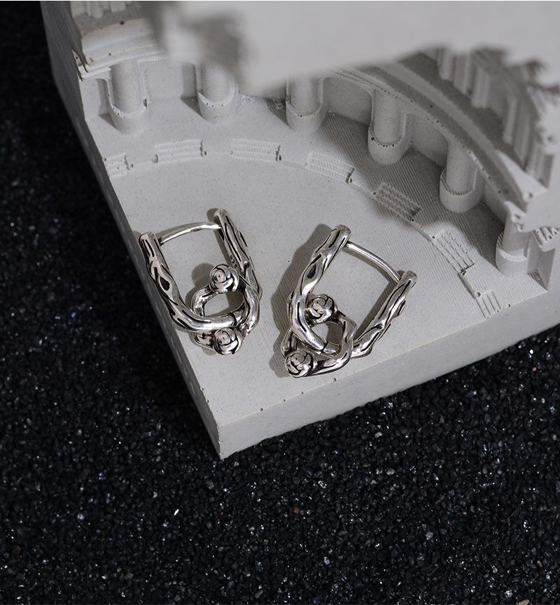 Pendientes vintage de rosa roja estilo online, pendientes de textura metálica para mujer, pendientes personalizados de nicho, pendientes en forma de U, venta al por mayor