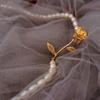 | Collar de perlas naturales de agua dulce con colgante de rosa, inyección de oro de 14 quilates, estilo retro, ligero, de lujo, con cuentas de mijo y cadena de clavícula, nuevo estilo. |