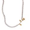 | Collar retro de perlas naturales de agua dulce con diseño de nicho, estilo Zhong Chuxi, gargantilla con pequeño collar de frijol dorado para mujer |