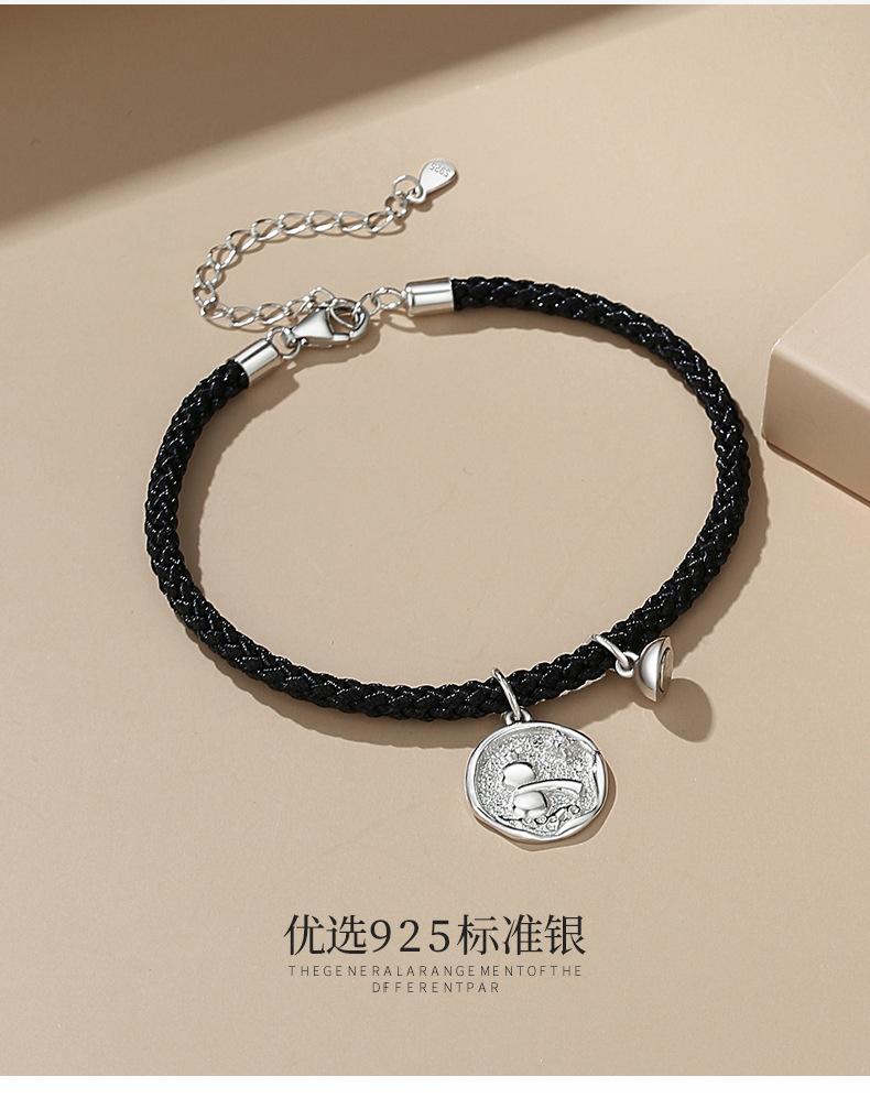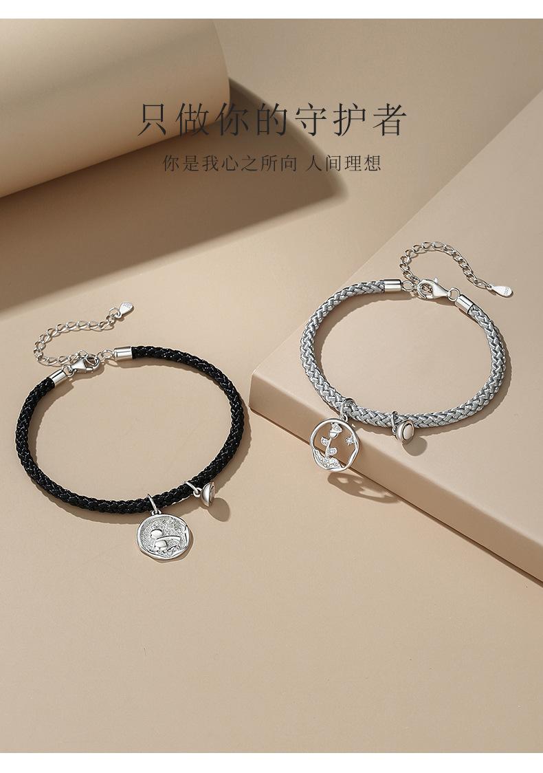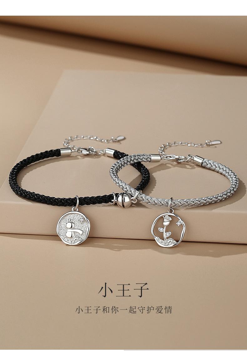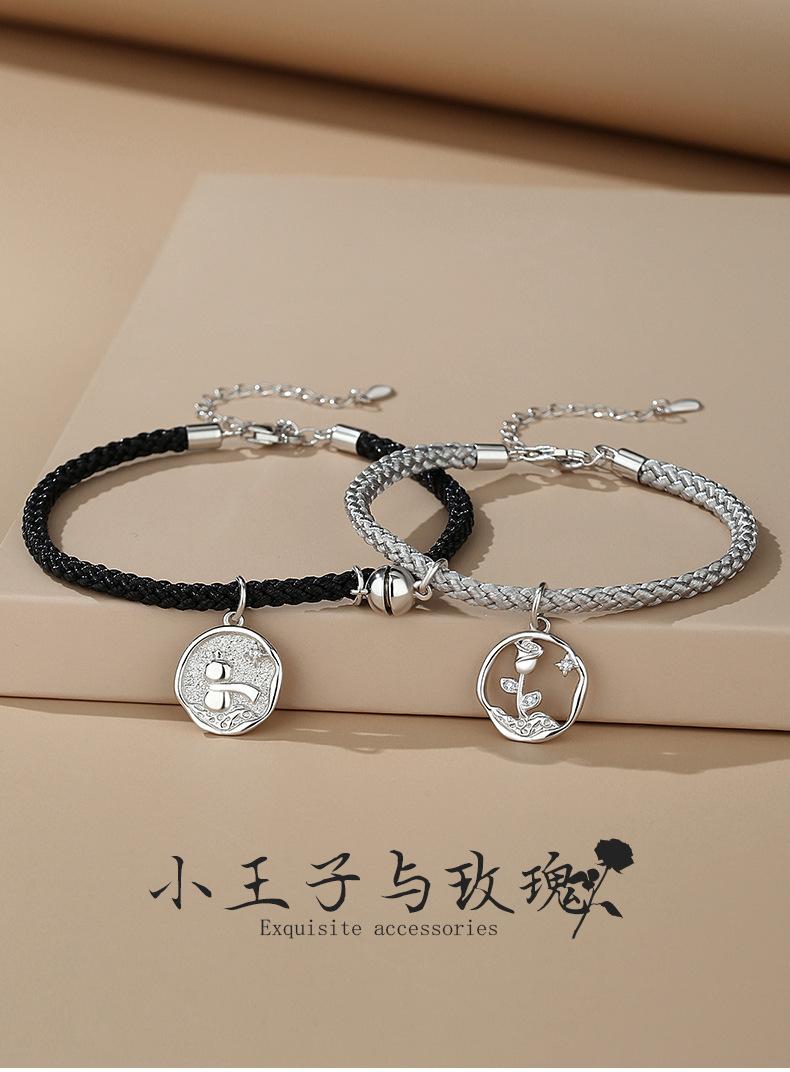 Pulsera de pareja de diseño original El Principito y la rosa, par galvanizado, pulsera de plata S925 ins, día de San Valentín, día de San Valentín