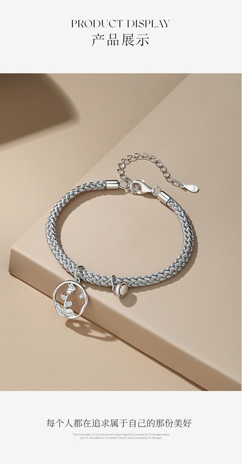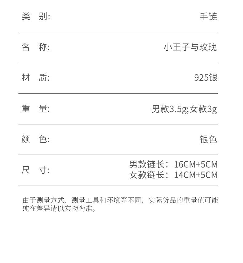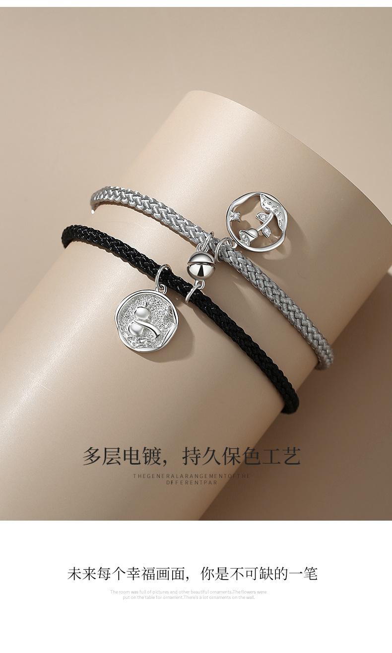 Pulsera de pareja de diseño original El Principito y la rosa, par galvanizado, pulsera de plata S925 ins, día de San Valentín, día de San Valentín
