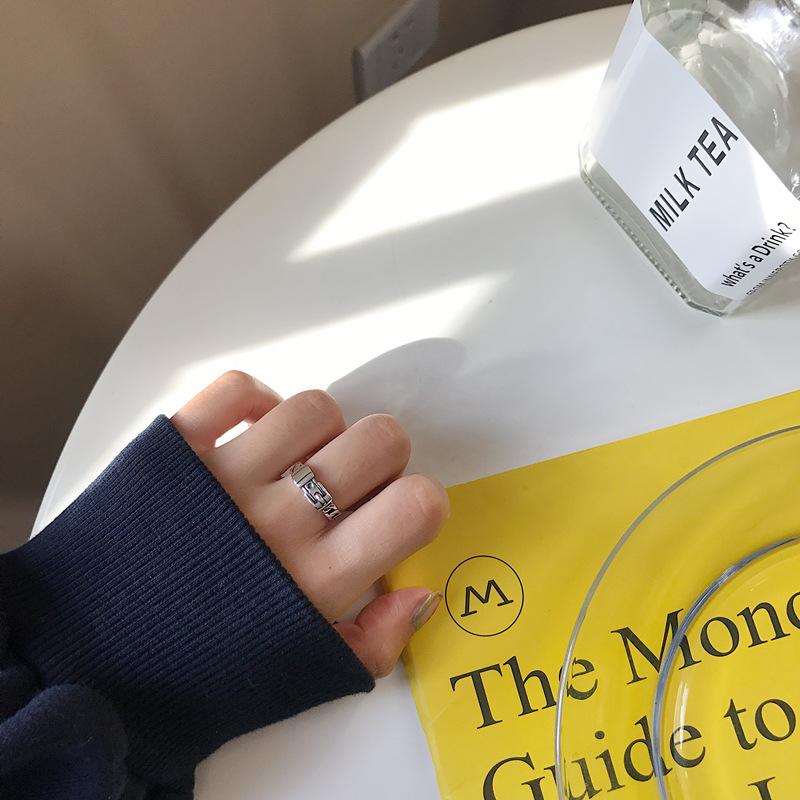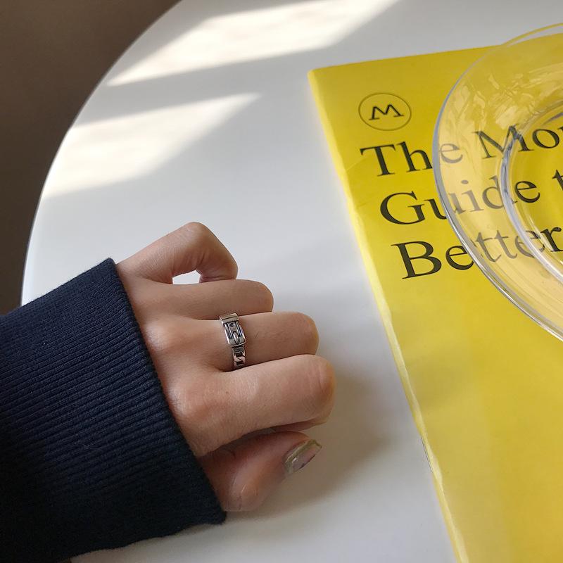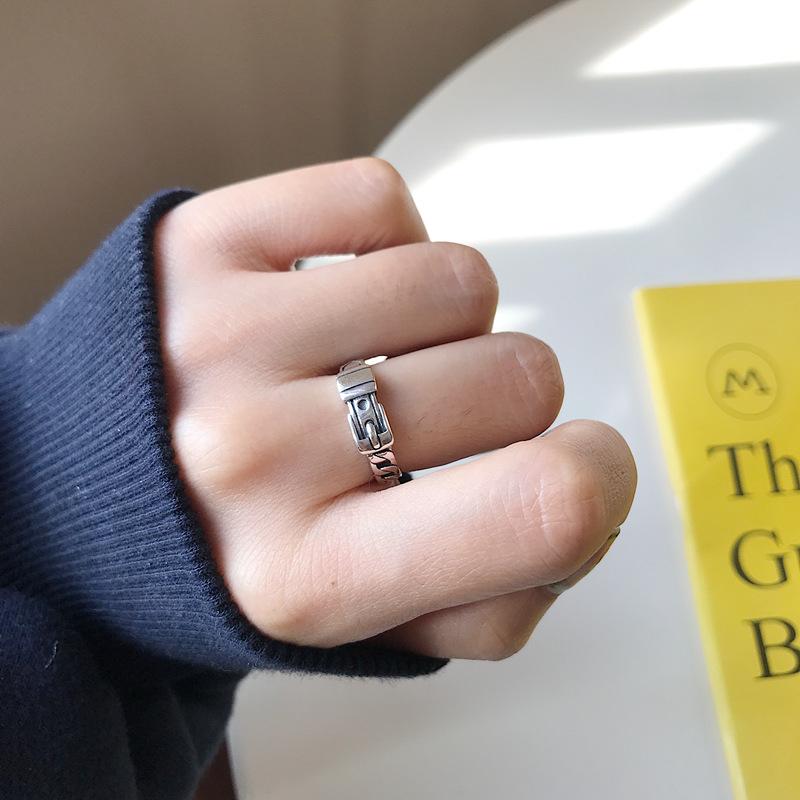 Compra Anillo abierto distintivo con hebilla de cinturón de cadena desgastada retro de plata S925 estilo coreano Kasht al por mayor en Joom.pro