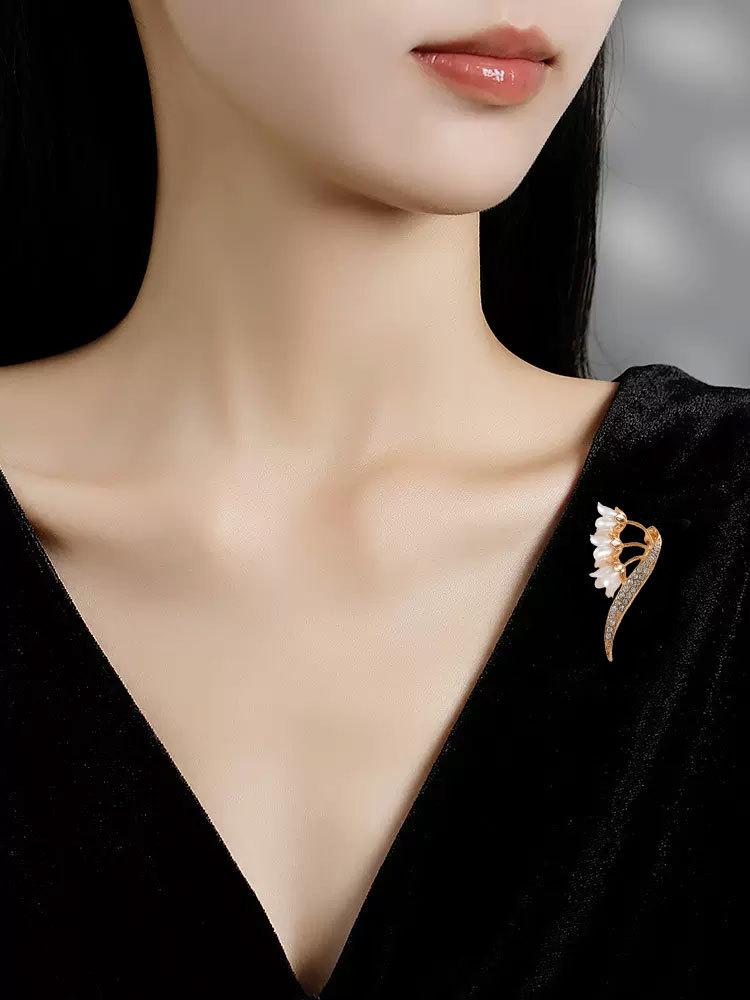 Compra Broche de lirio elegante de lujo con diseño de nicho, accesorio de ramillete para traje, alfiler de alta gama, adorno de ropa para mujer, joyería al por mayor en Joom.pro