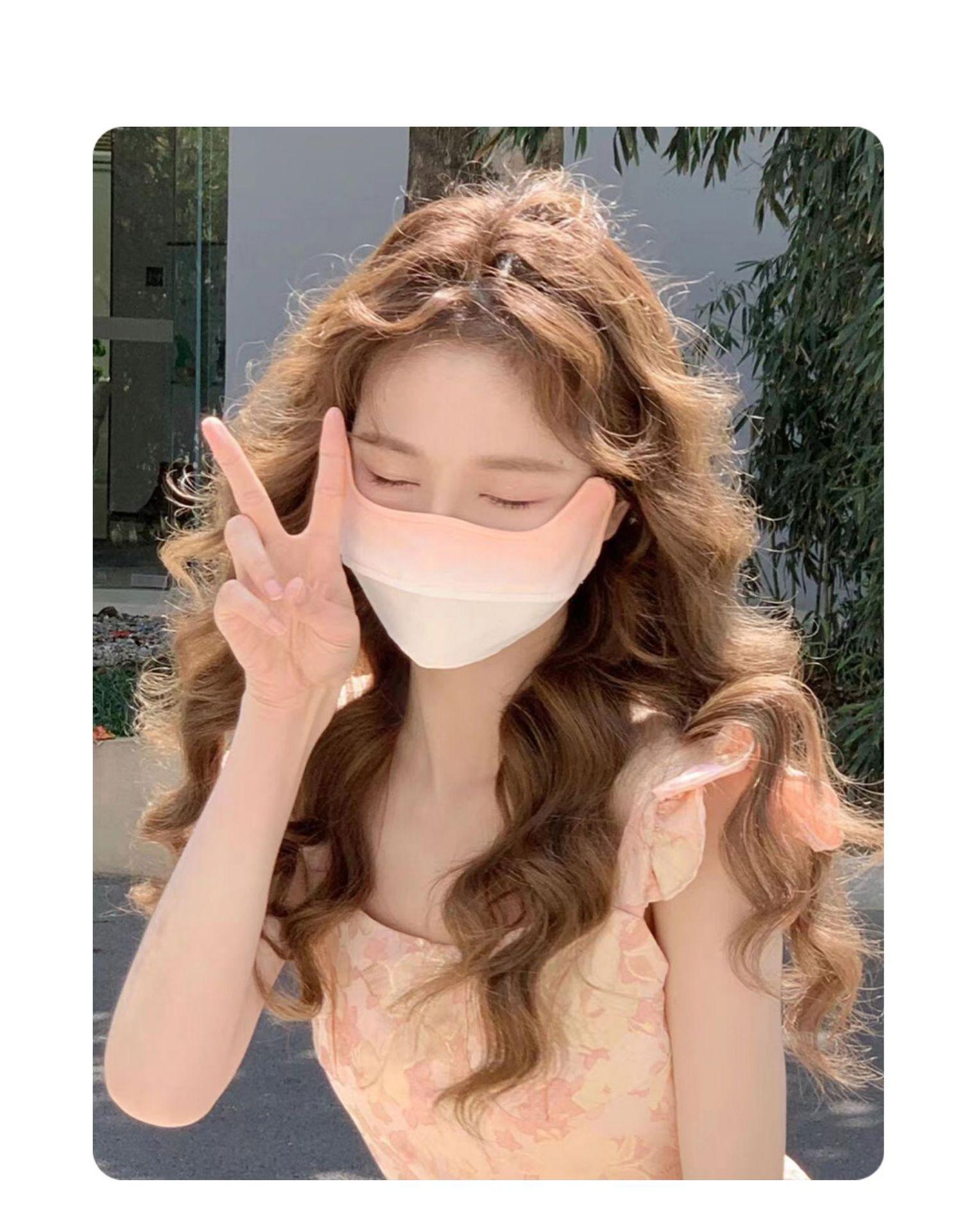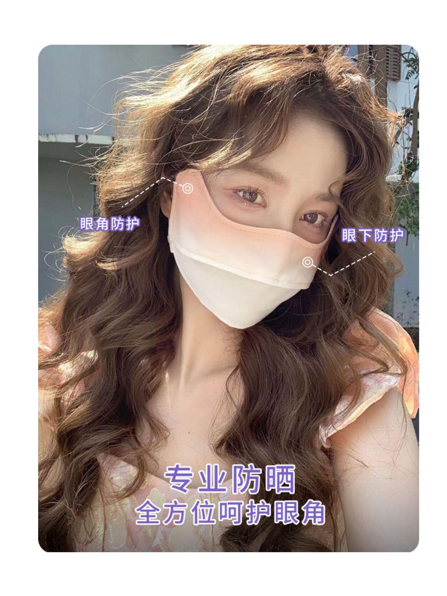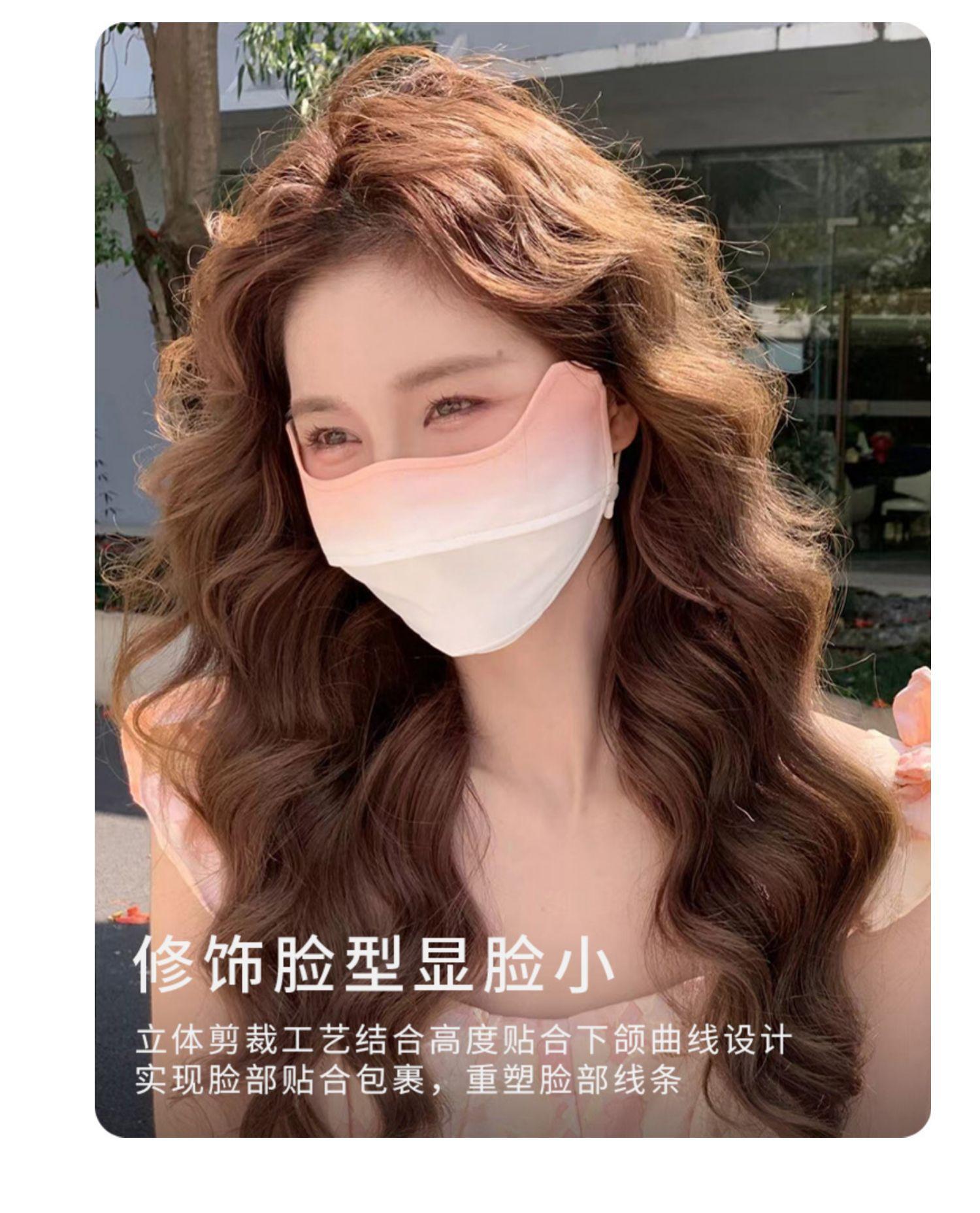 Máscara de protección solar con ángulo de protección ocular para mujer, cubierta de protección UV para rostro completo, máscara facial de seda de hielo de color degradado fino de verano, máscara ruborizada
