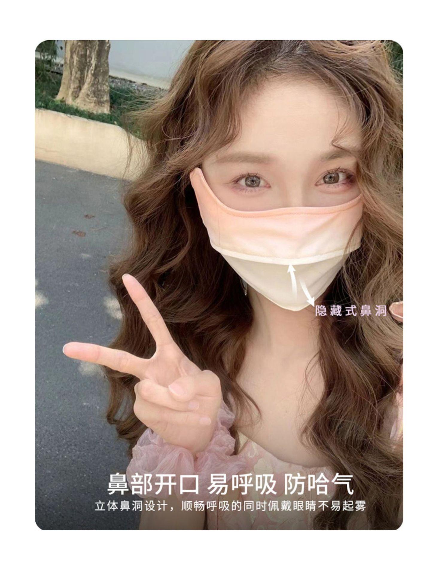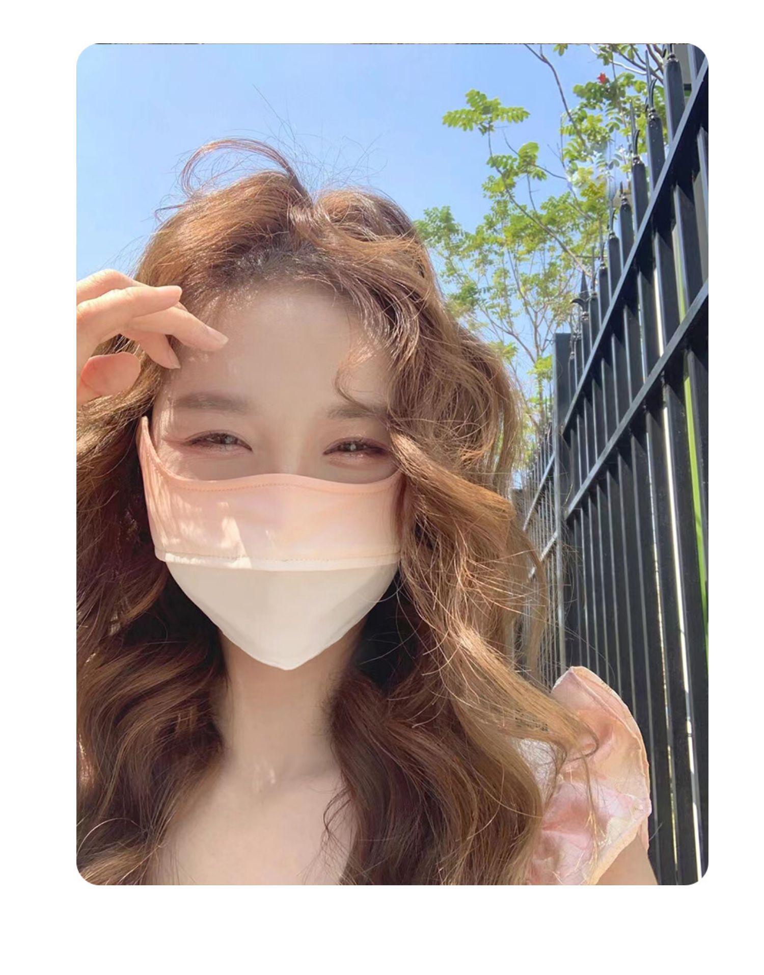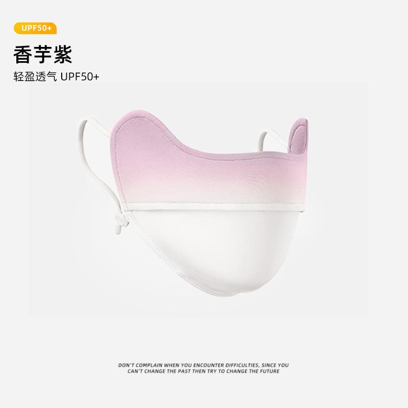Máscara de protección solar con ángulo de protección ocular para mujer, cubierta de protección UV para rostro completo, máscara facial de seda de hielo de color degradado fino de verano, máscara ruborizada
