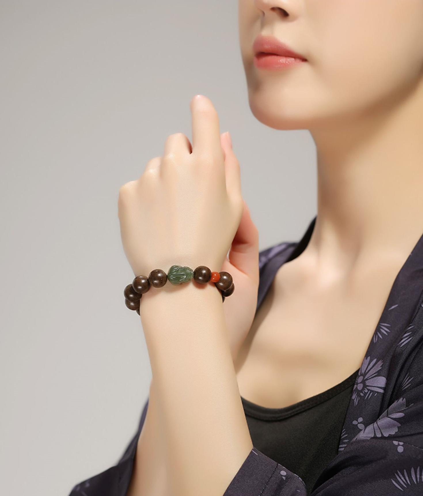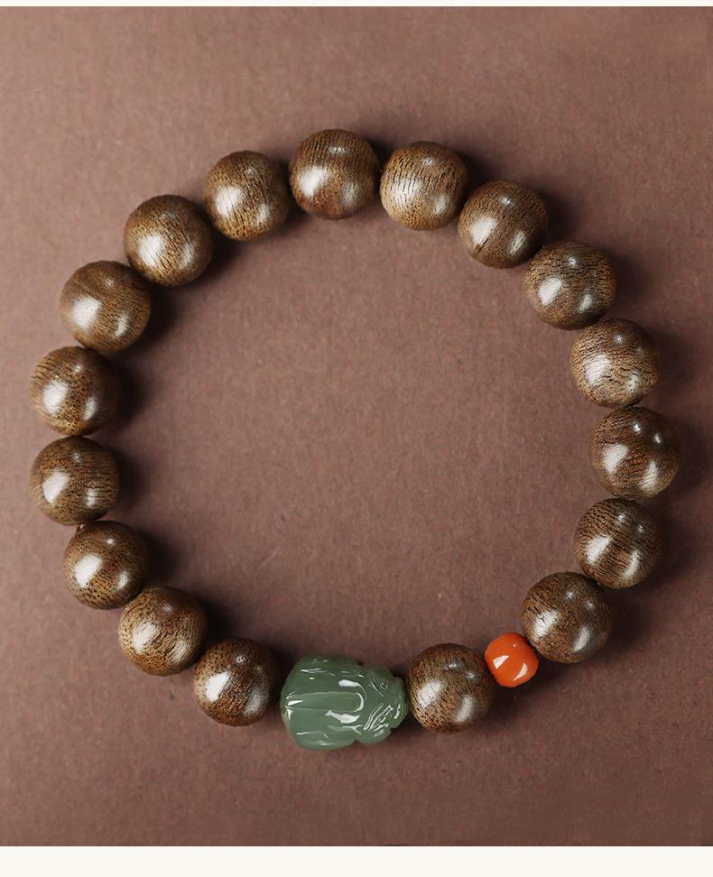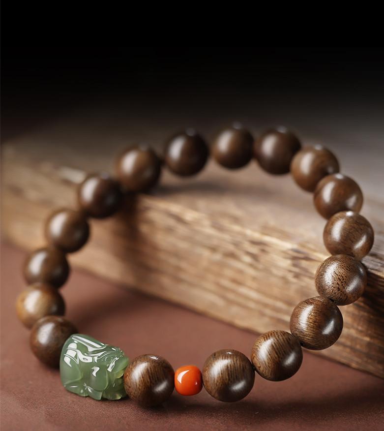 Agarwood Hetian Jade Pixiu Bracelet [12mm]]