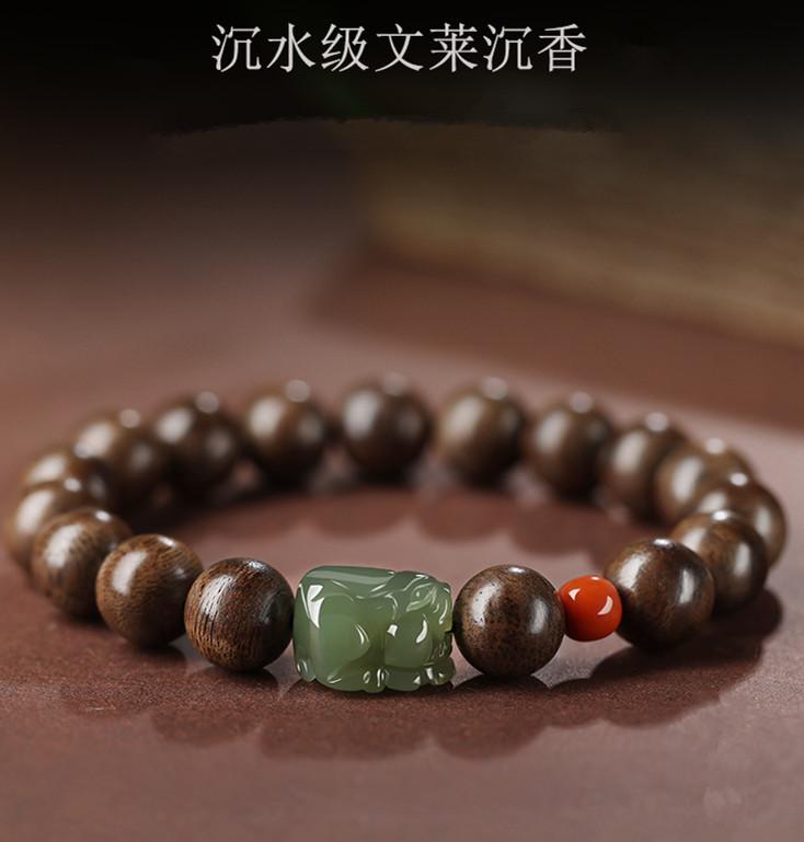Agarwood Hetian jade brave bracelet [6mm]], Chenxiang Hetian Jade Pixiu Bracelet [8MM]], Aquilarius Hetian Jad...