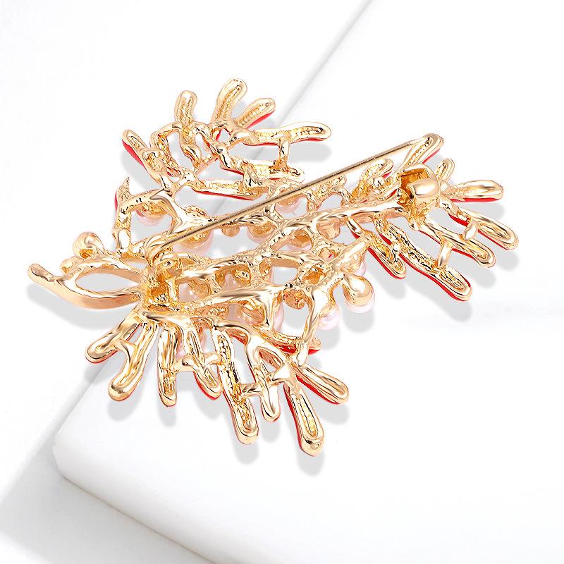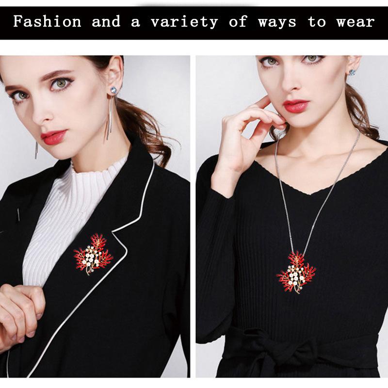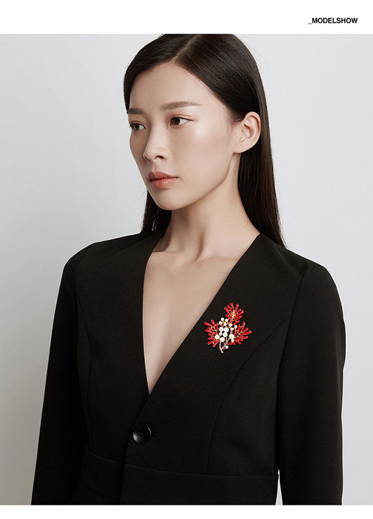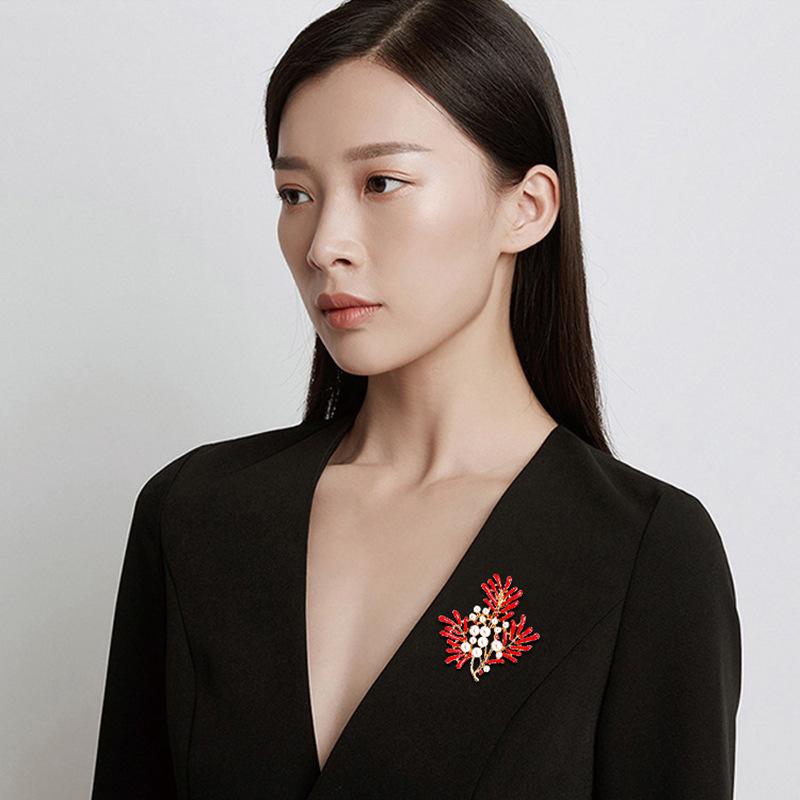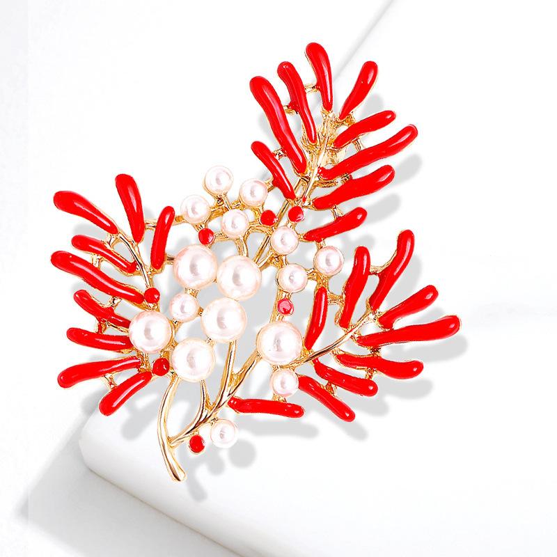 Versión coreana de alta gama, exquisito broche para vestido de novia festivo, esmalte de arce rojo, perla, bufanda, hebilla, abrigo, joyería al por mayor