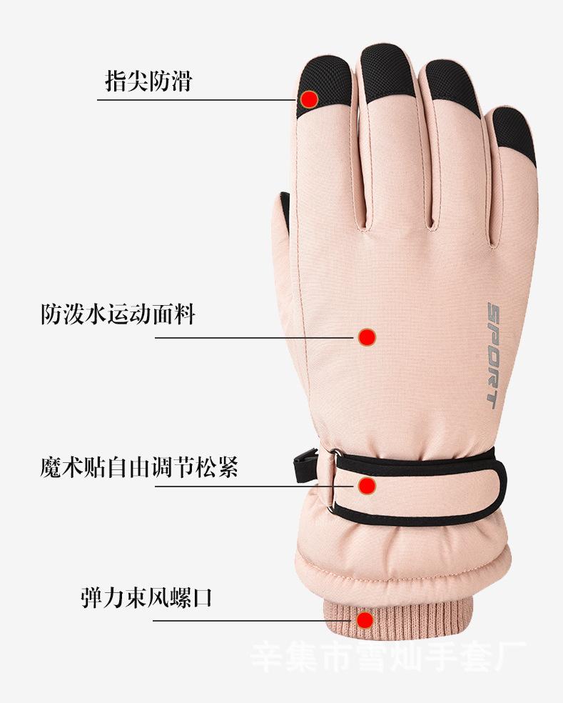 Guantes de esquí para hombre y mujer, de algodón y forro polar grueso, antideslizantes, con pantalla táctil, para exteriores, montañismo, ciclismo, resistentes al viento e impermeables.
