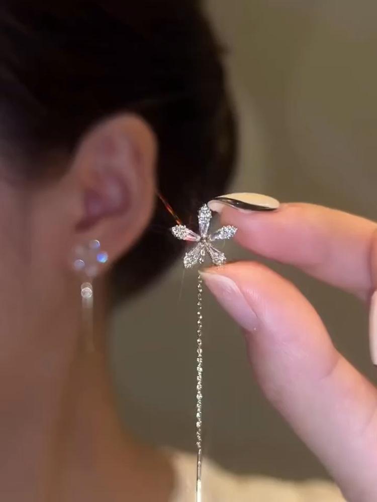 Pendientes de plata con borlas estilo coreano para mujer, diseño de nicho, Sense Advanced 2024, nuevos pendientes largos, modernos, ligeros, de lujo, estilo frío.