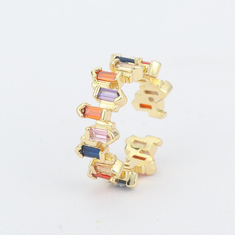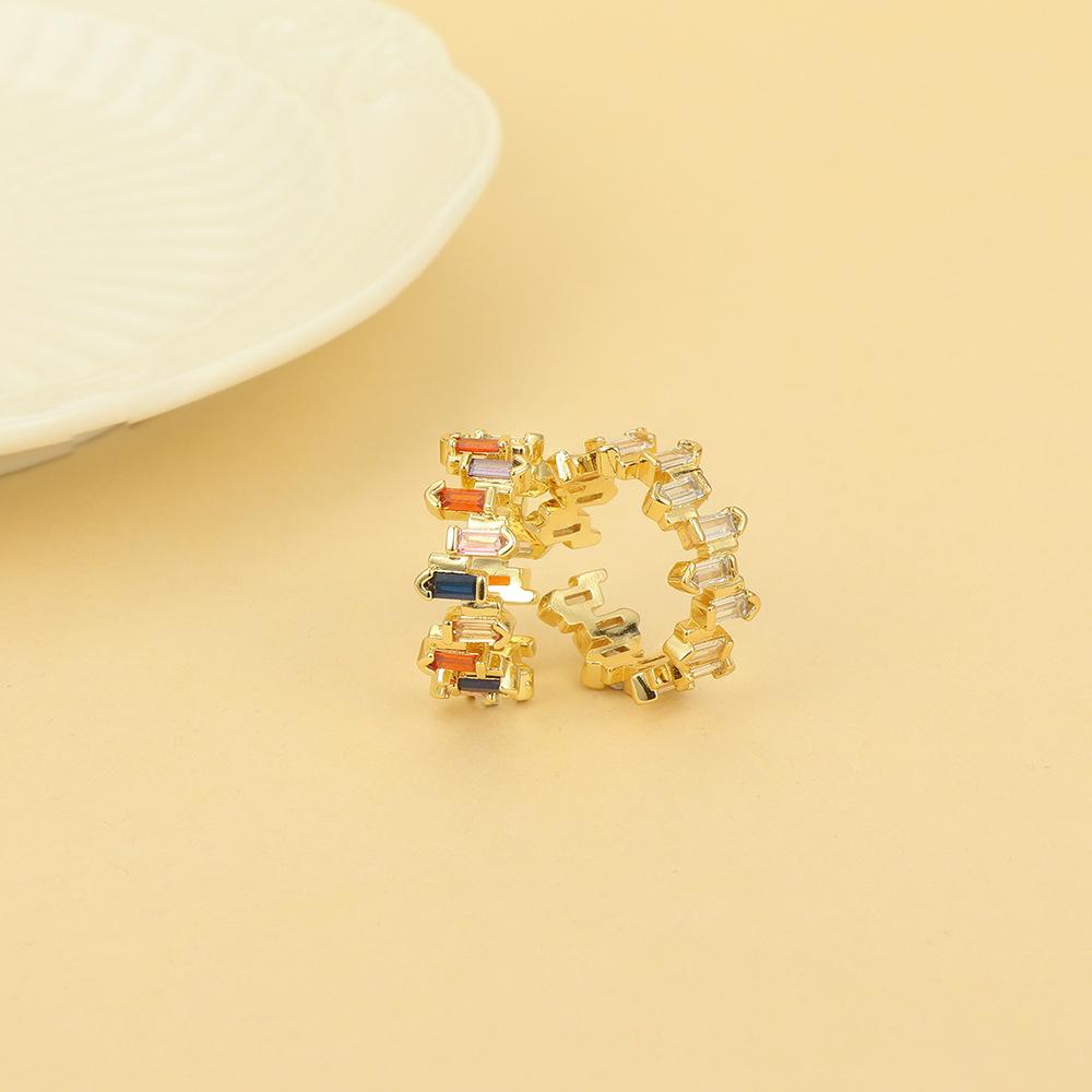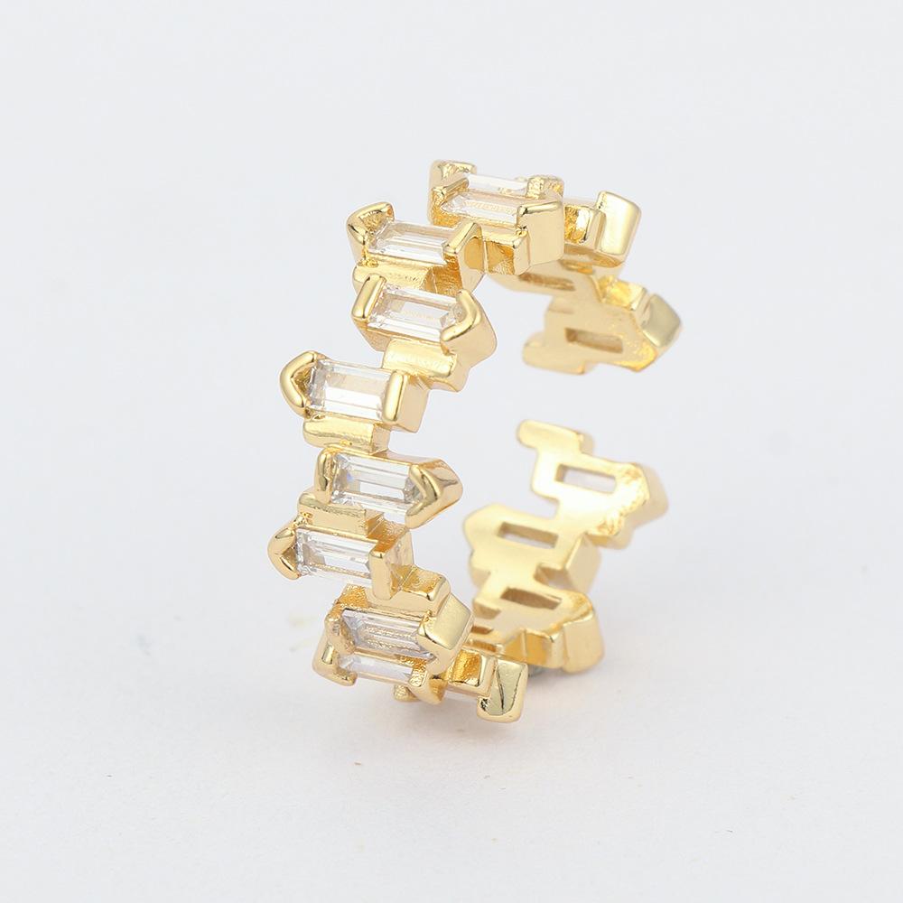 Moda europea y americana nuevo anillo de dedo alta retención de color chapado en cobre con oro real micro incrustación taladro geométrico irregular anillo de circón