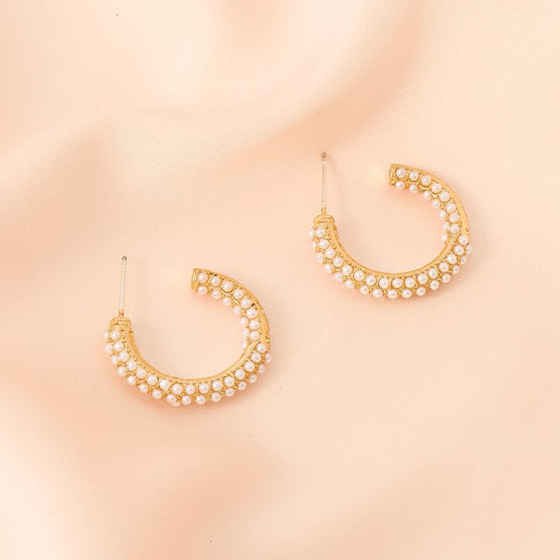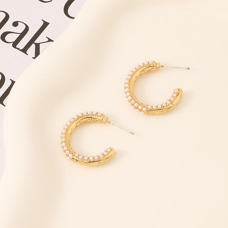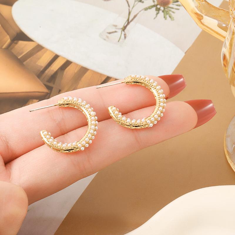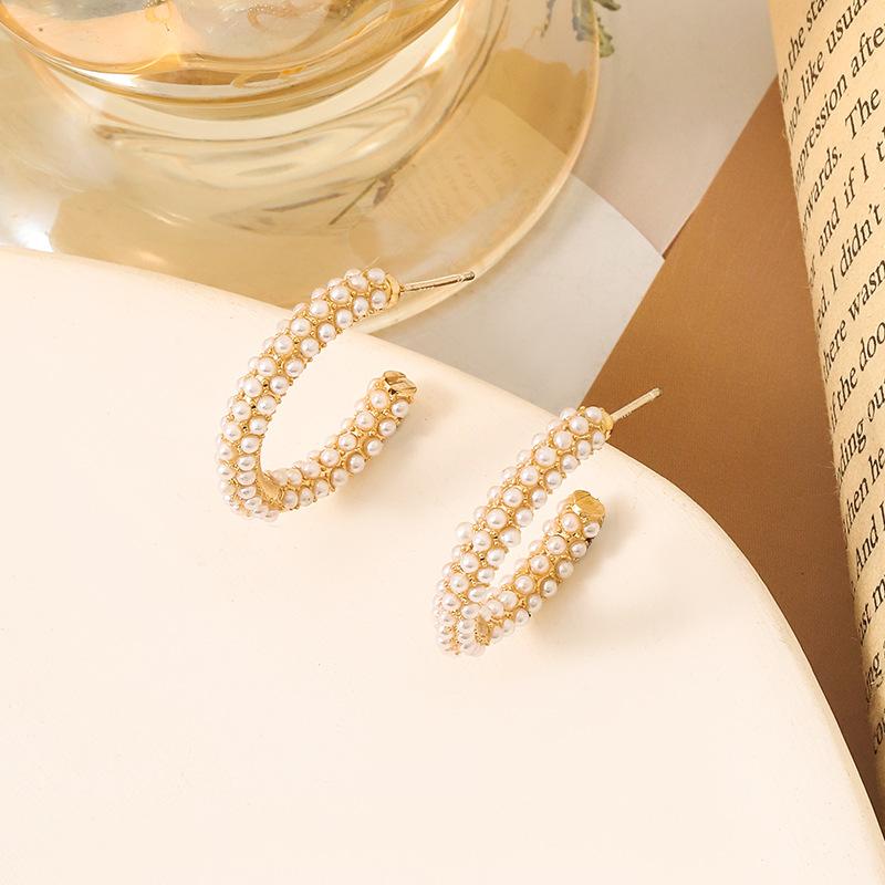 Pendientes de perlas elegantes tipo C de lujo, estilo retro francés, con diseño de nicho personalizado para mujer, de plata S925