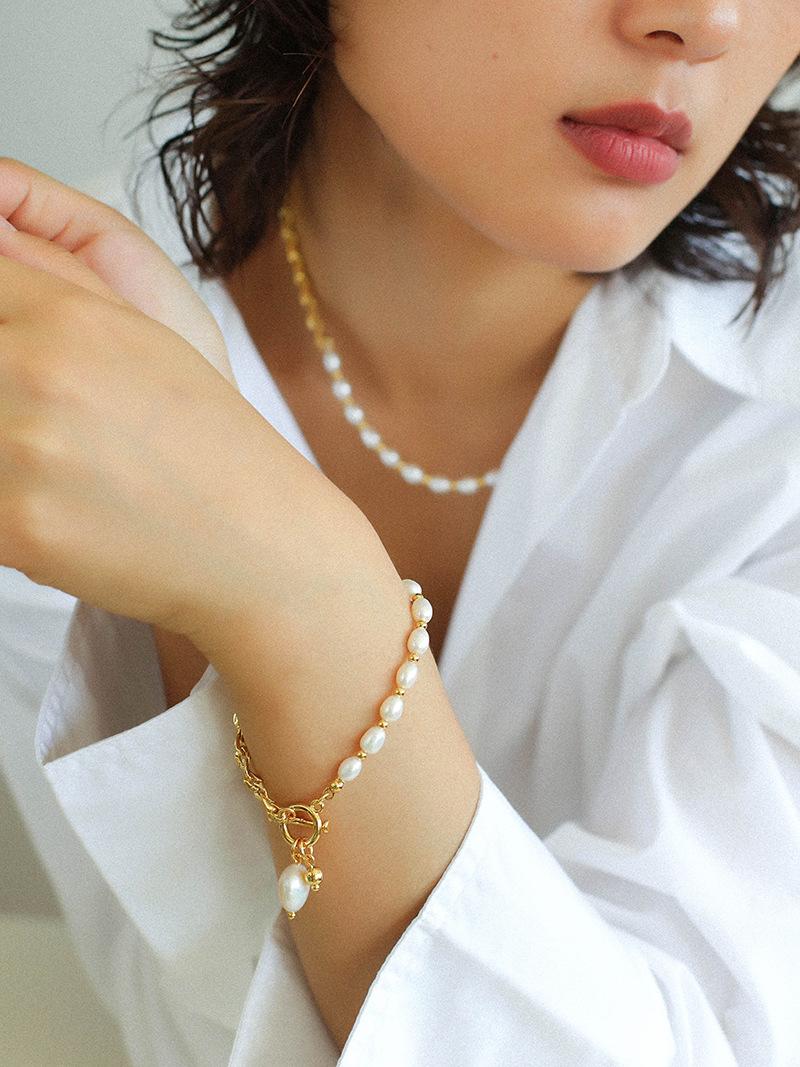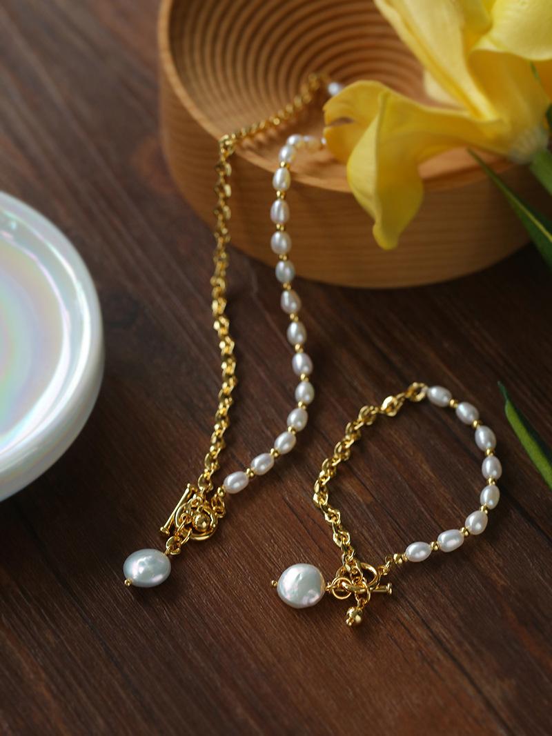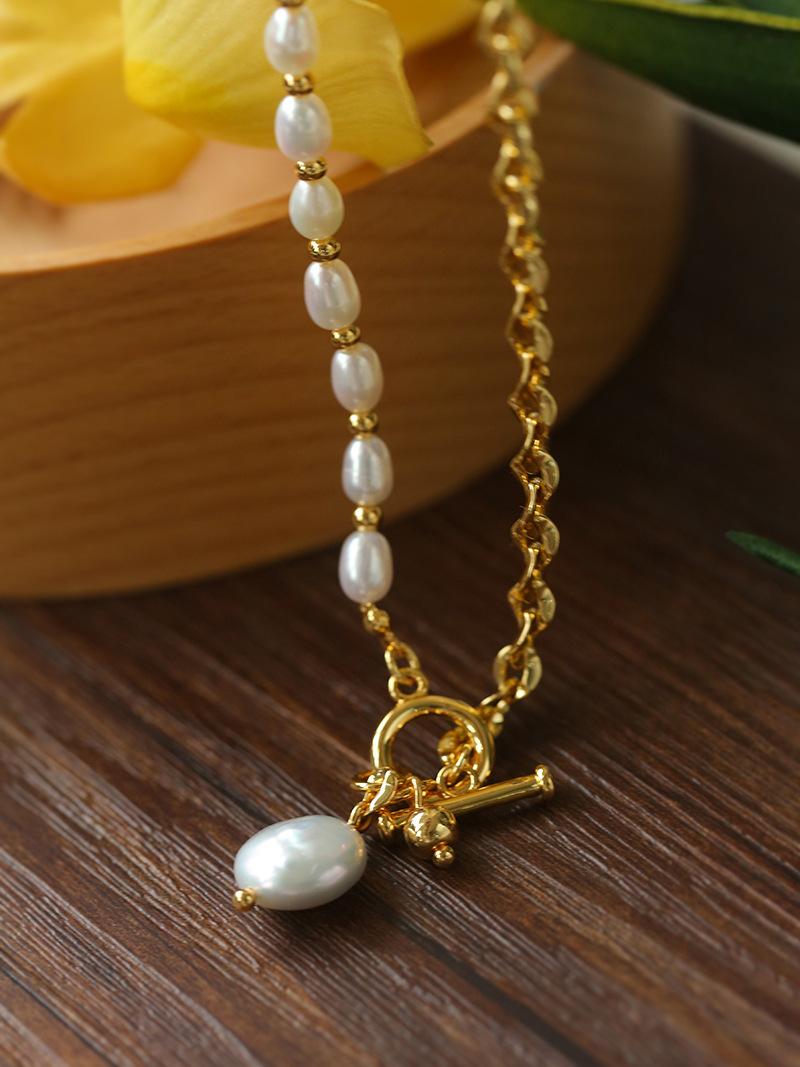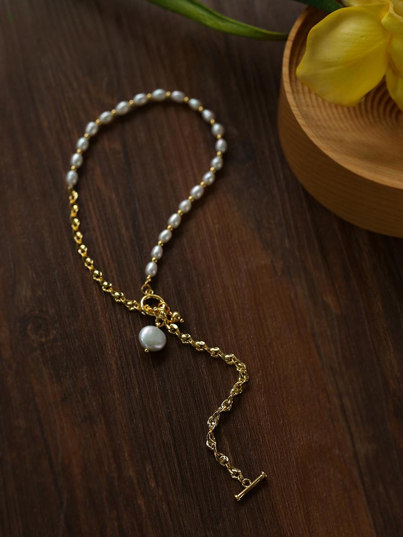 Nueva cadena de costura con cadena de clavícula en forma de Y de perla, pulsera para mujer, estilo simple, collar de perlas de agua dulce con nicho, joyería