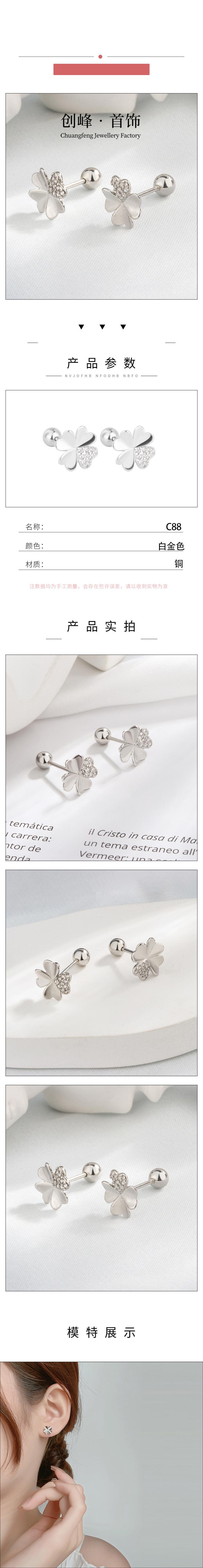 Compra Pendientes de trébol con hebilla de rosca y hoja de la suerte con incrustaciones de diamantes para mujer, elegantes pendientes de alta calidad de celebridades de Internet. al por mayor en Joom.pro