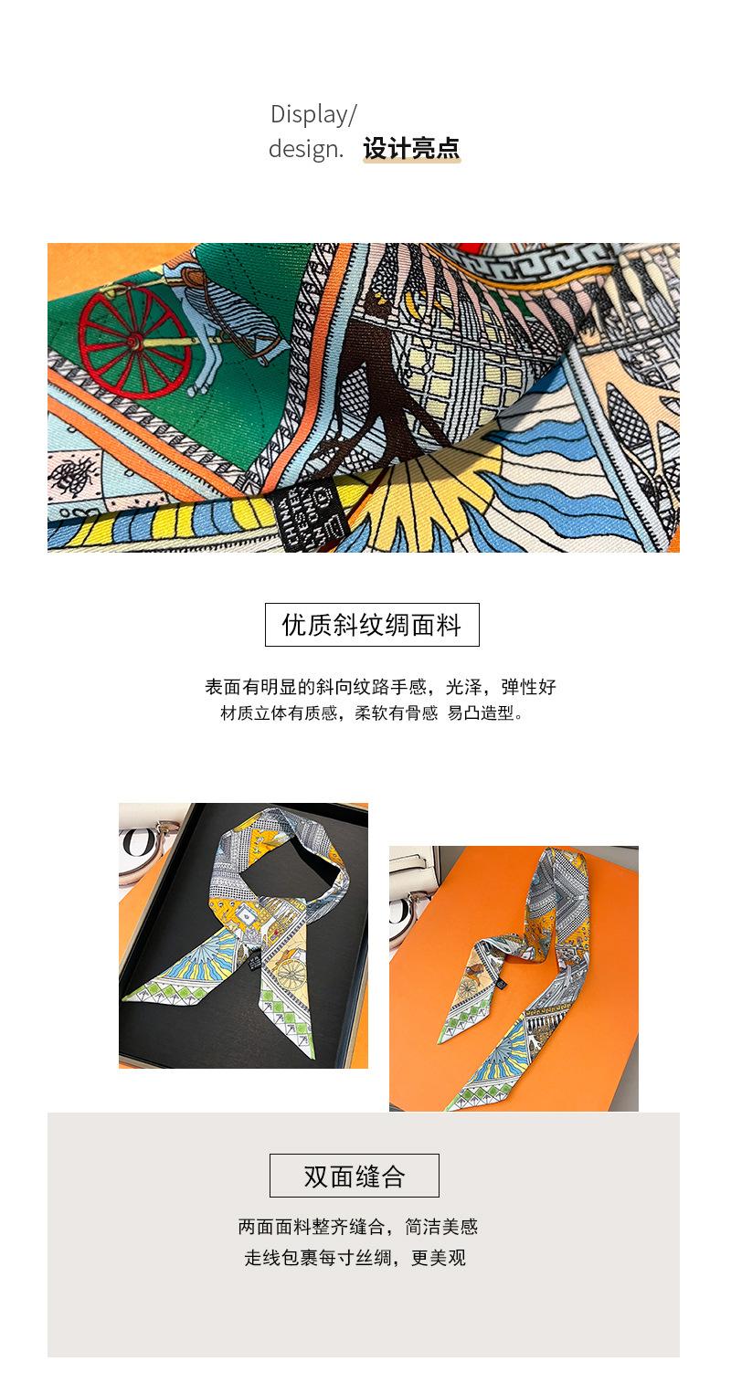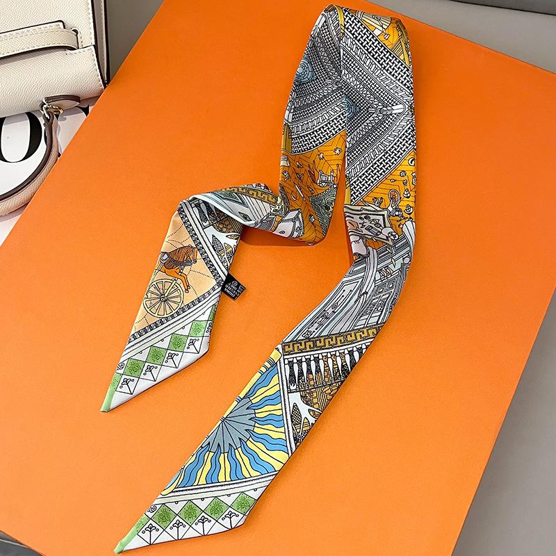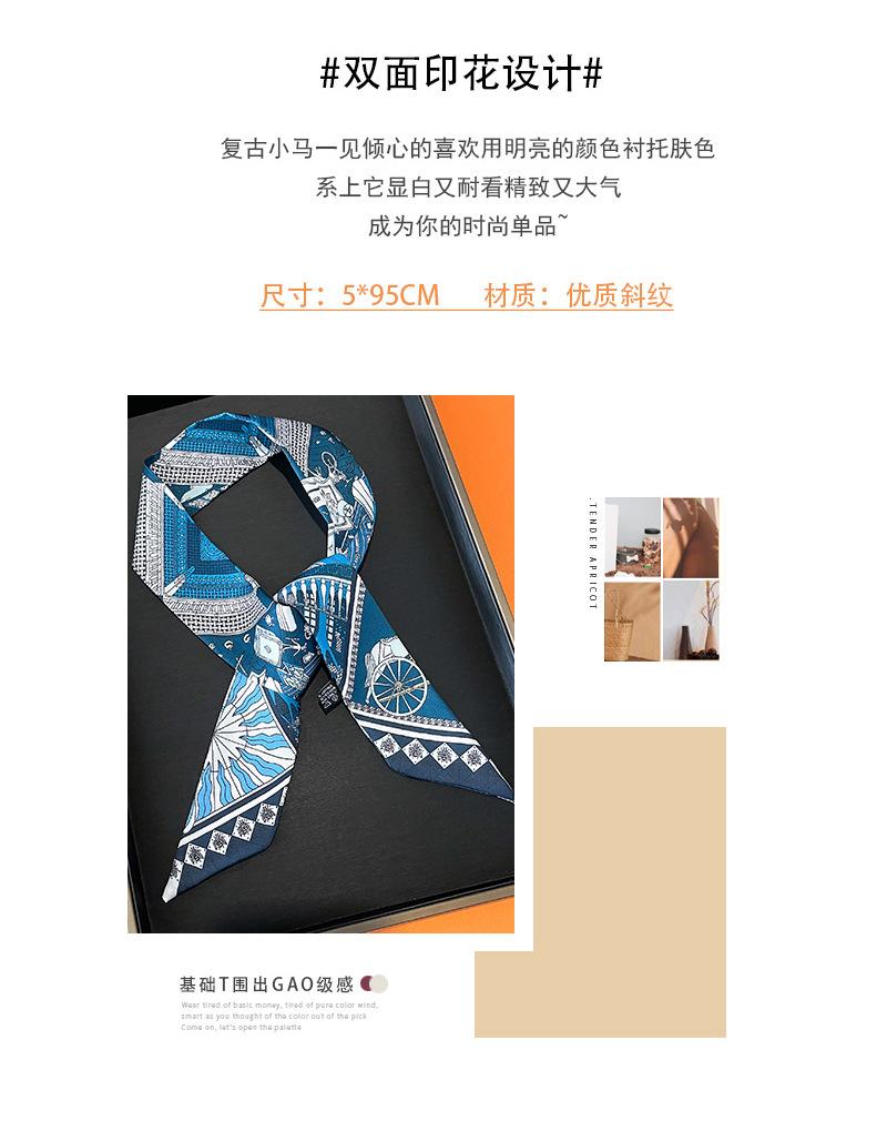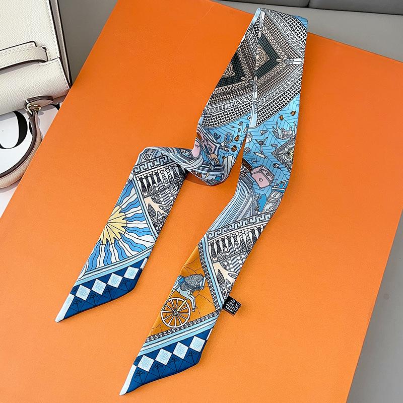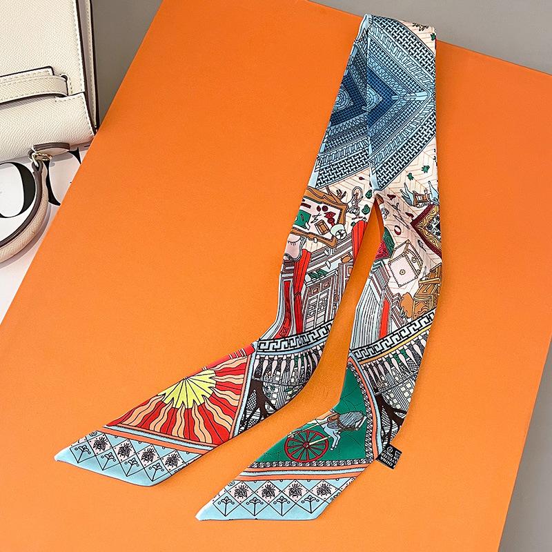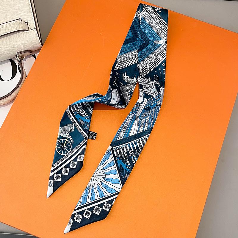 Bufanda Larga de Seda Delgada Estrecha Larga para Mujer Otoño e Invierno Nueva Lazo Asa de Bolso Pañuelo para la Cabeza Estilo Francés Cinta Pequeña Decorativa