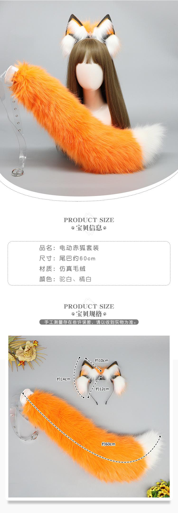 Electric red fox earmuffs-orange and white, Electric red fox earmuffs-camel white, Detachable touch motor, Ele...