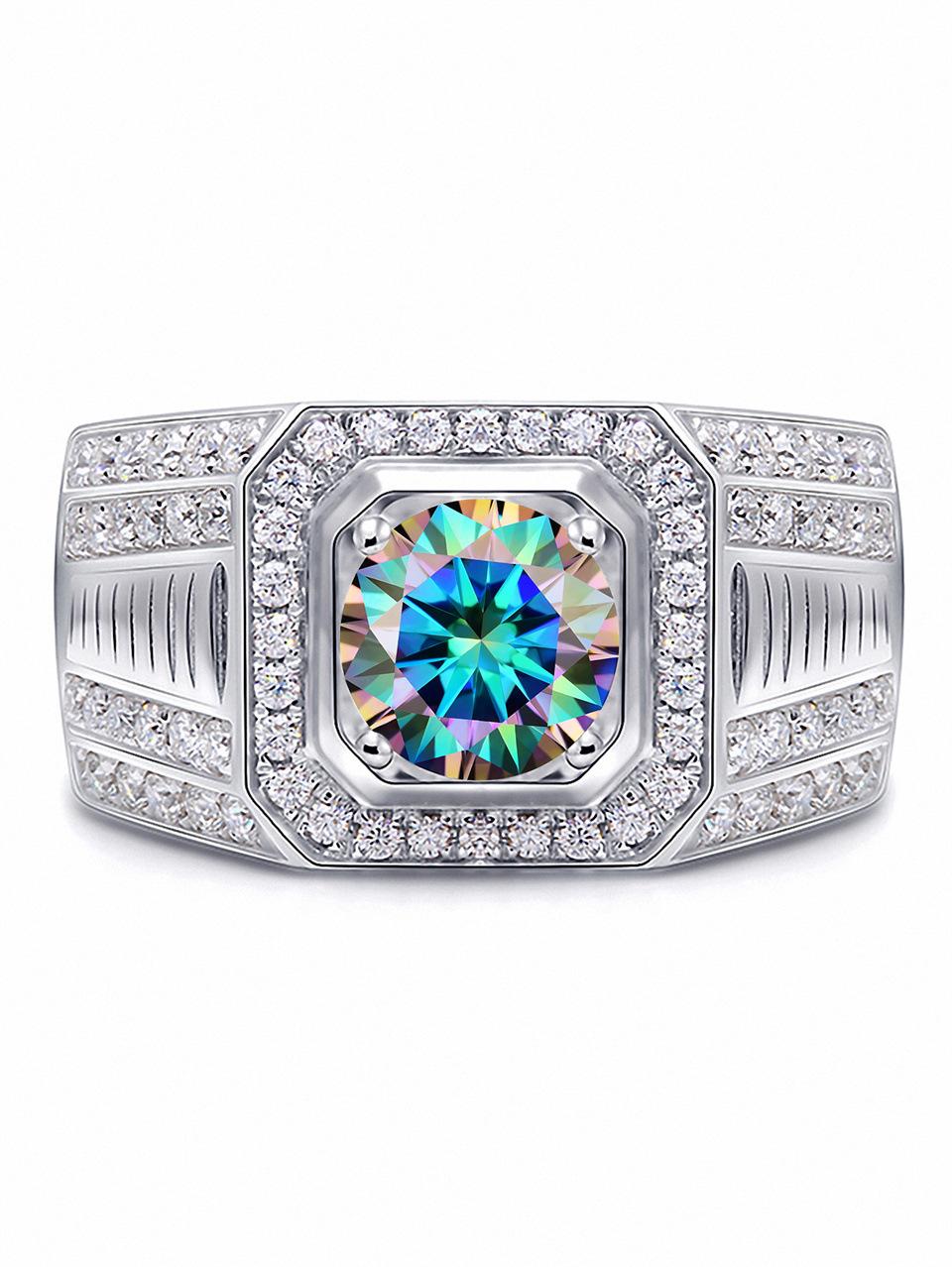 Anillo para Hombre Multicolor de Moissanita con Diamantes Completos de Cuatro Garras Plata 925 Platino PT950 Anillo de Bodas para Hombre Boda TikTok