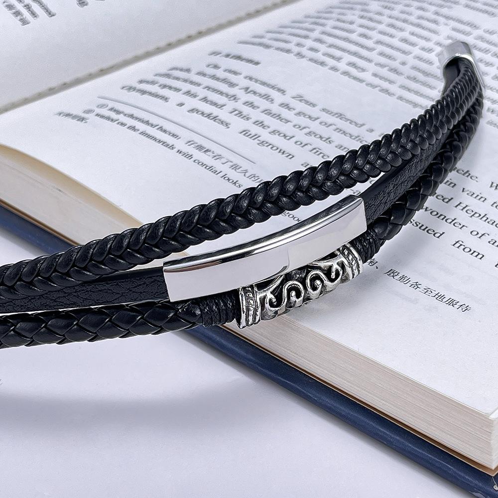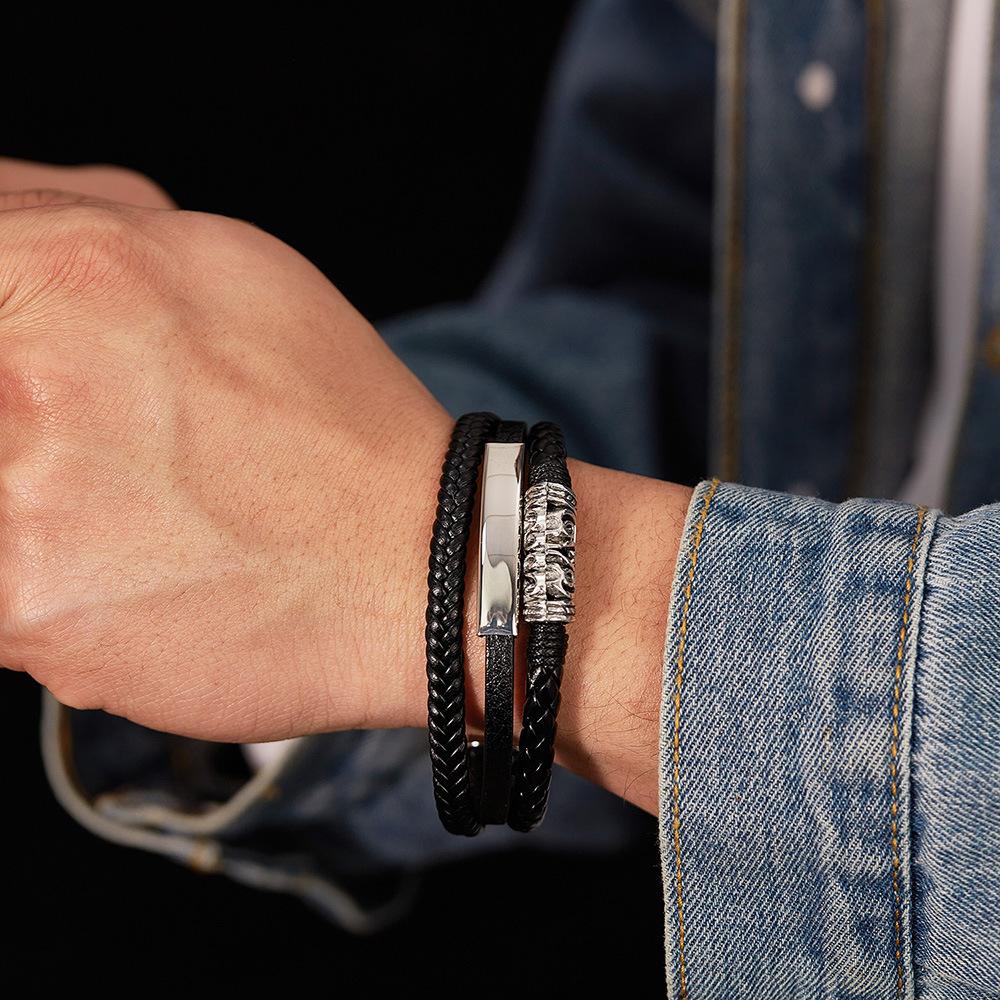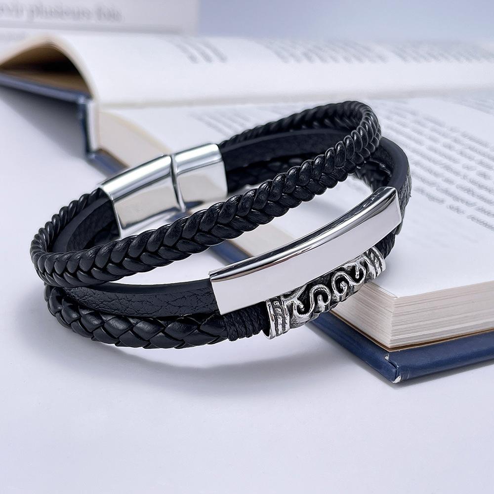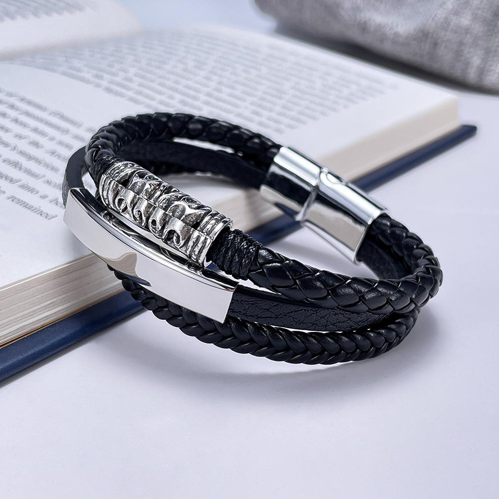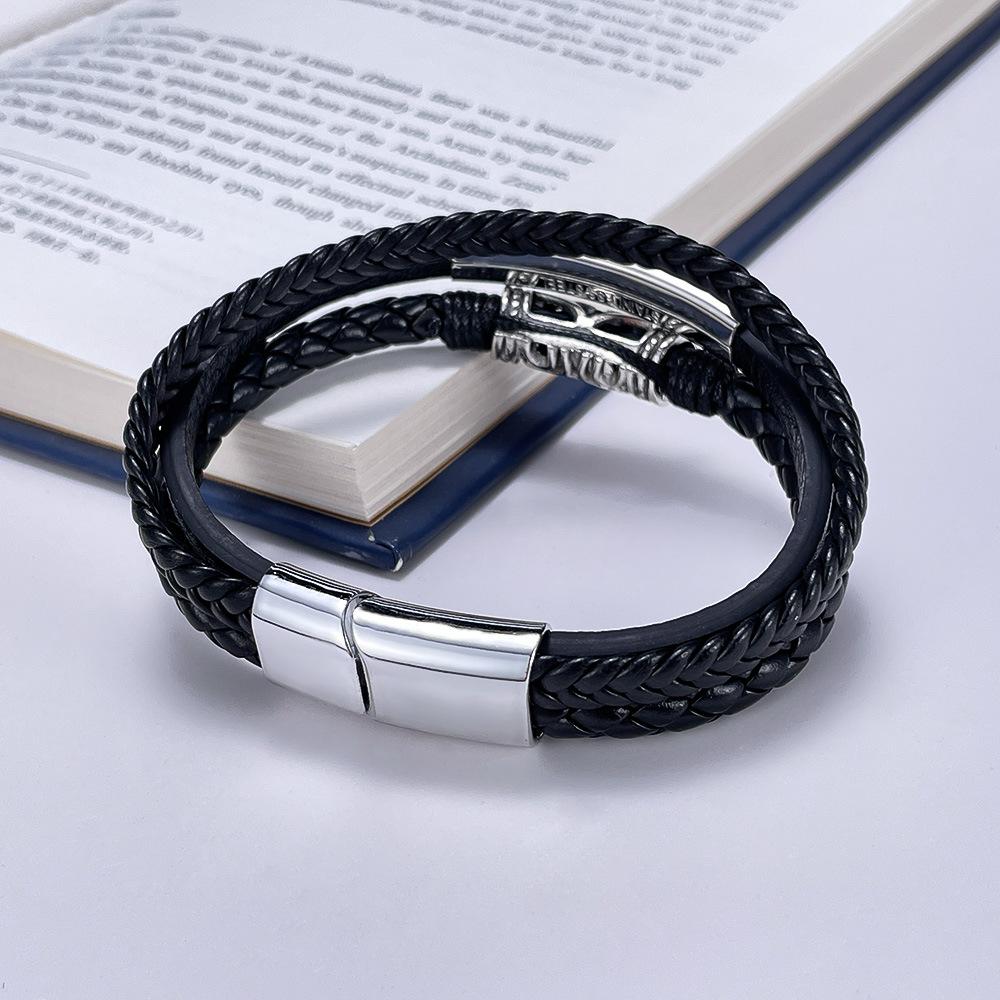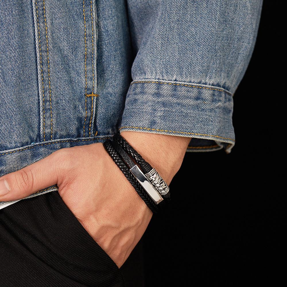 Pulsera de acero inoxidable para hombre de Amazon transfronteriza, tendencia de moda, pulsera Joker, accesorios de pulsera de cuero tejido al por mayor