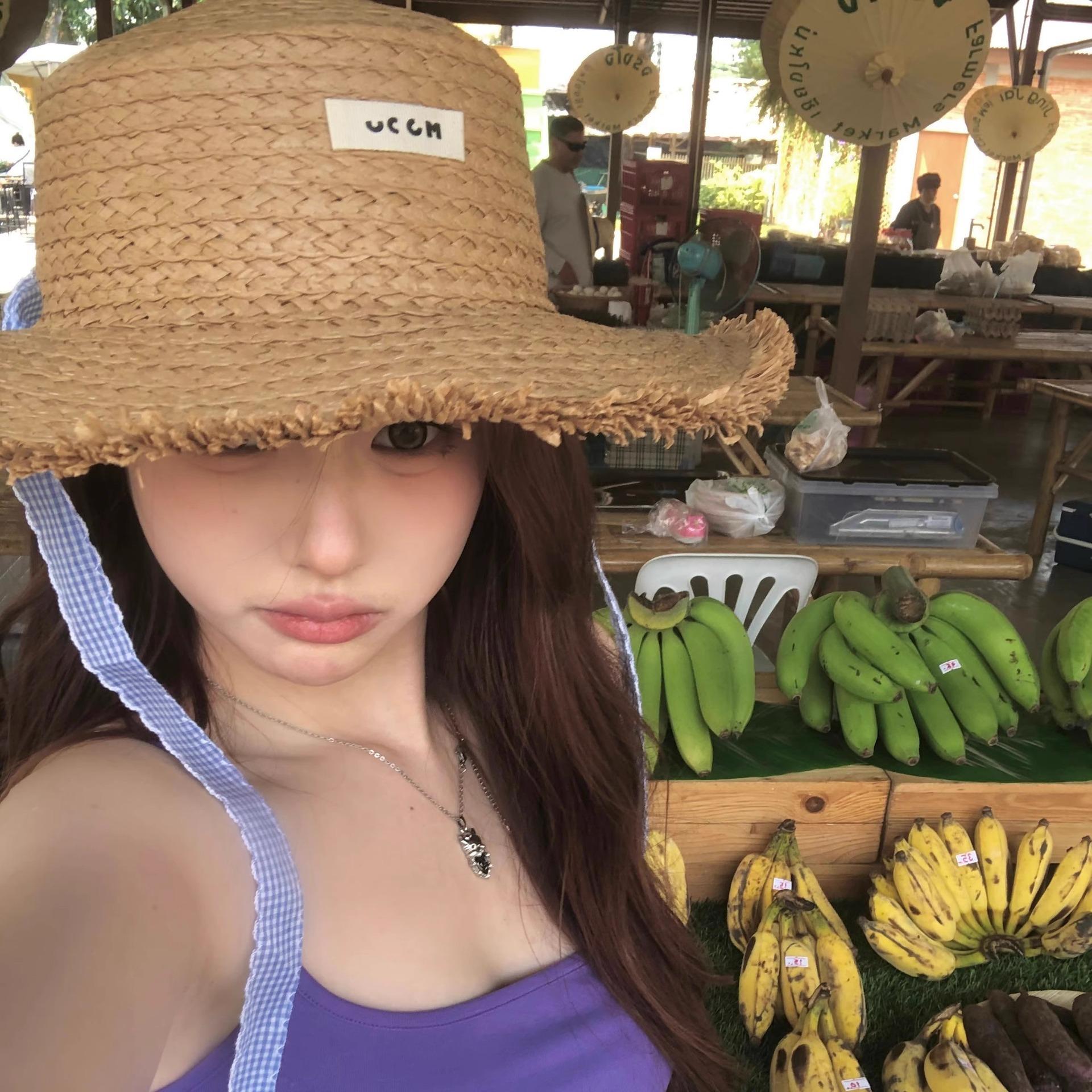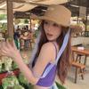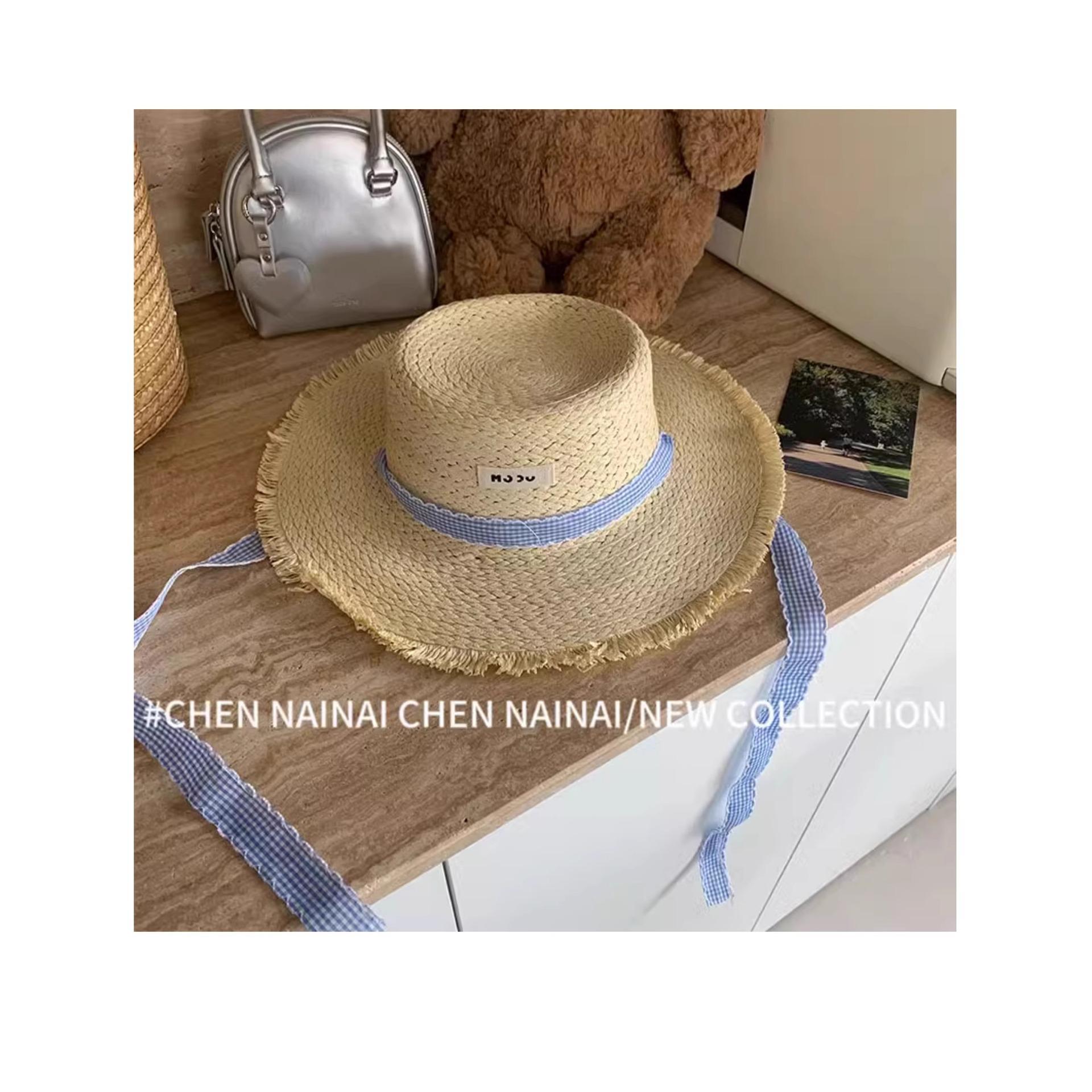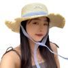 Nuevo sombrero coreano de rafia de ala grande y dulce de alta calidad para el sol para mujer, para vacaciones de verano en la playa, sombrero de playa con protección solar