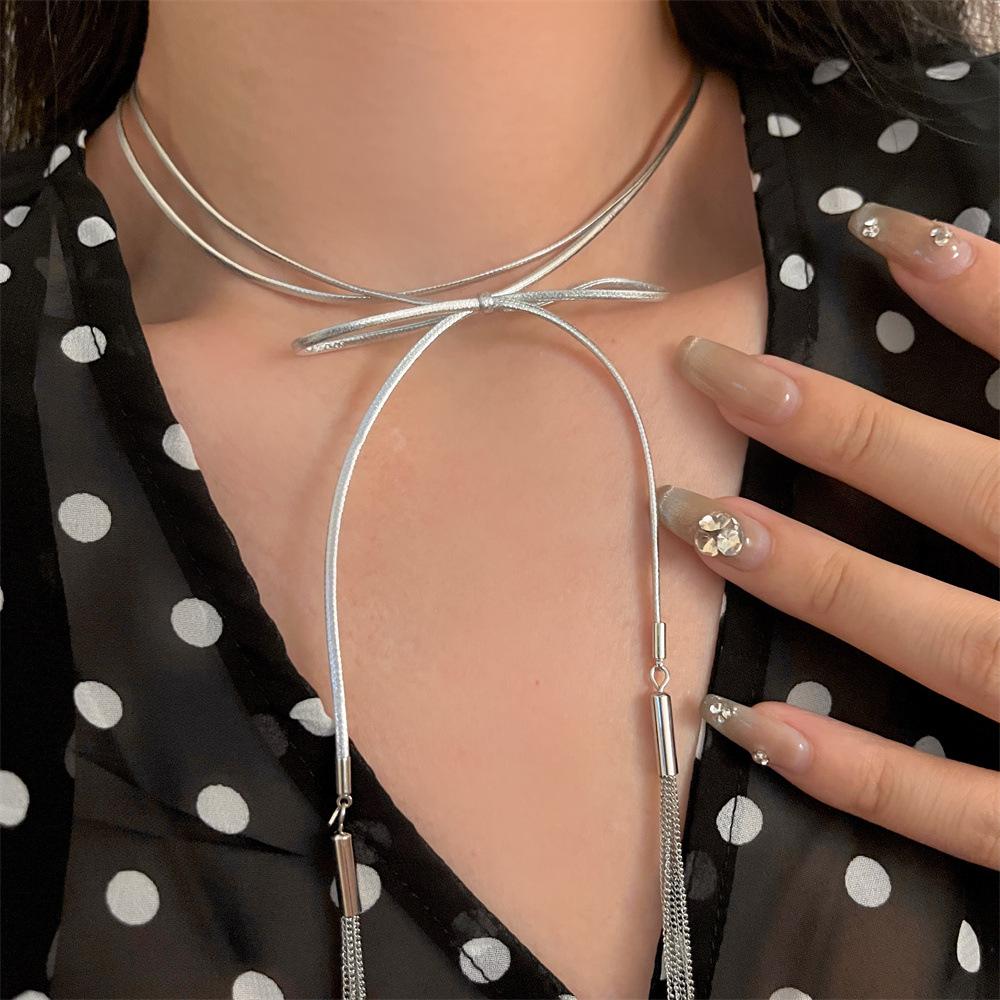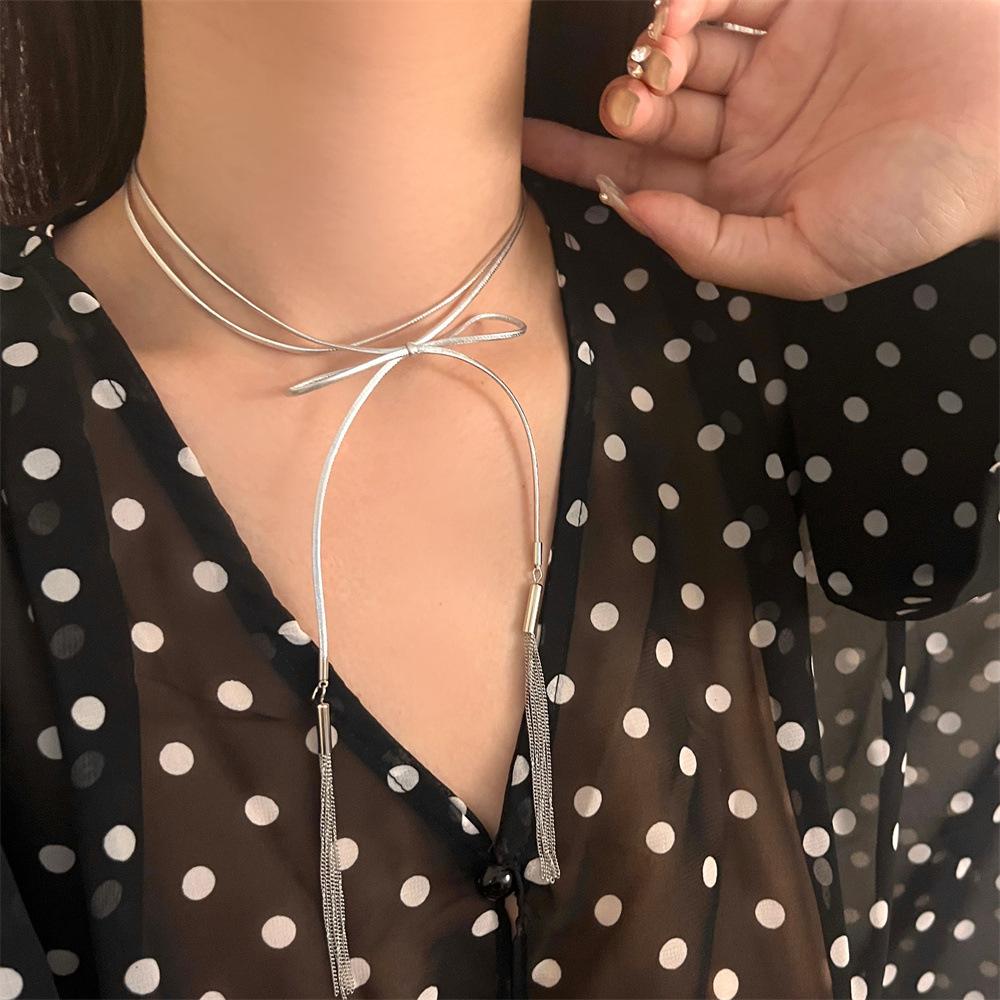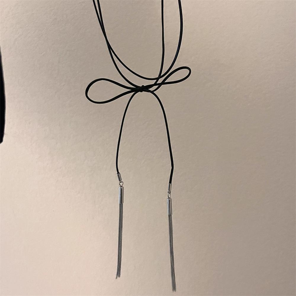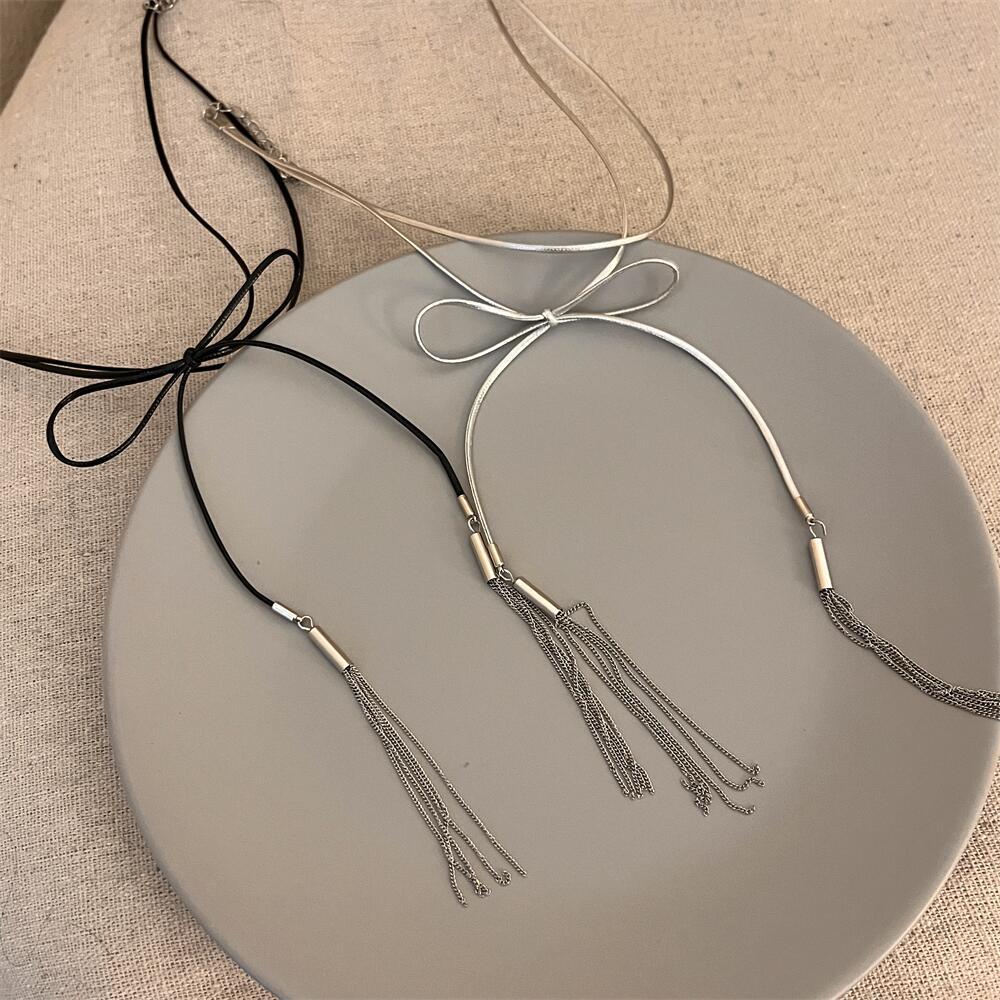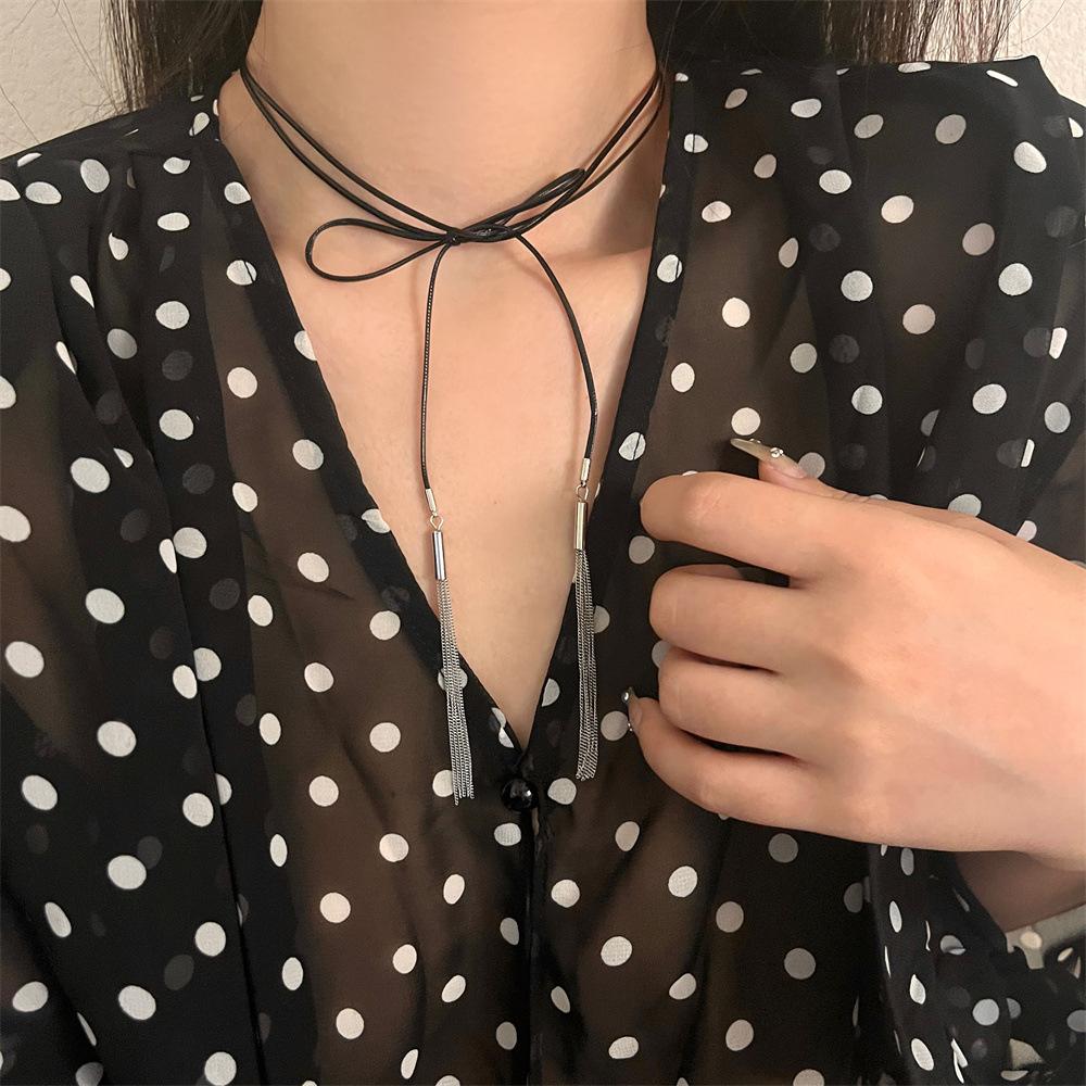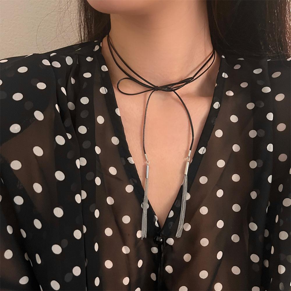Corea del Sur Dongdaemun Cuerda PU Borla Lazo Collar Refinado de Alta Gama Cadena Dulce Cool a la Moda con Especia
