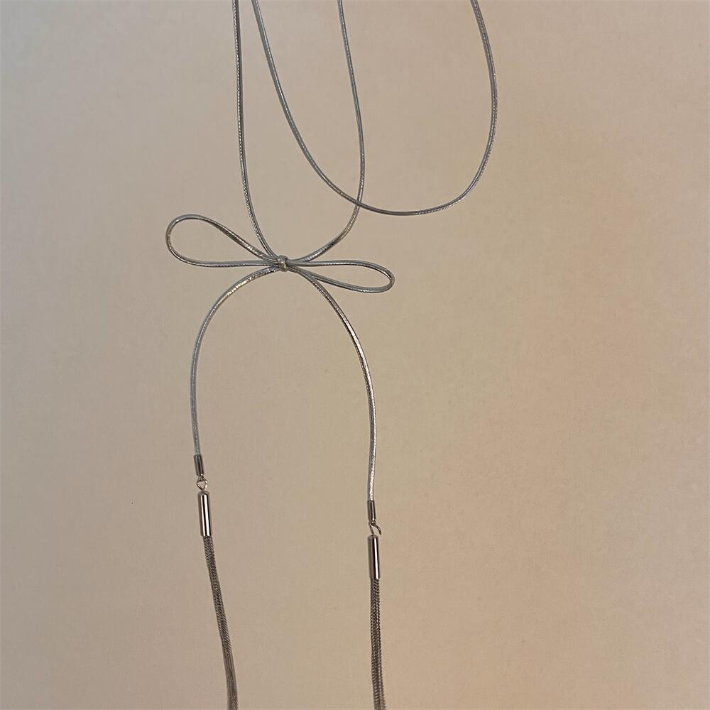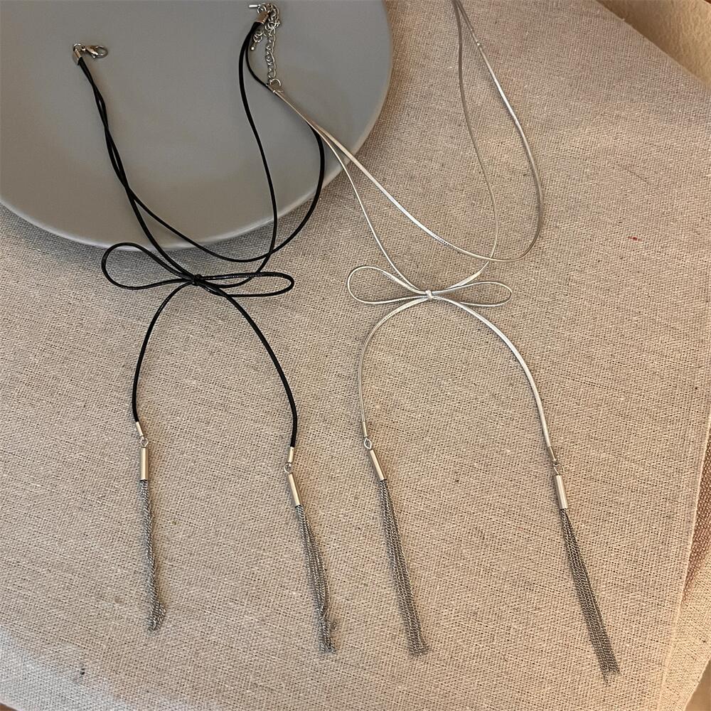 silver Bow Tassel Necklace, Black Bow Tassel Necklace