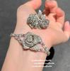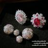 Collar con gemas rosas de Schubert, corte fino americano, chapado en oro de 18 quilates, pendientes con circonitas y flor de rosa, combinación de anillos
