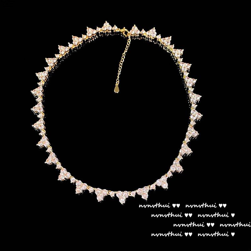096Z flash Diamond Golden Triangle zircon necklace, 184Z gold-plated Camellia short stud earrings, 184Z Gold P...