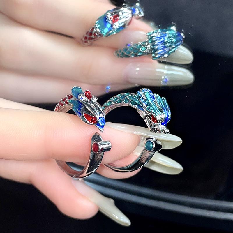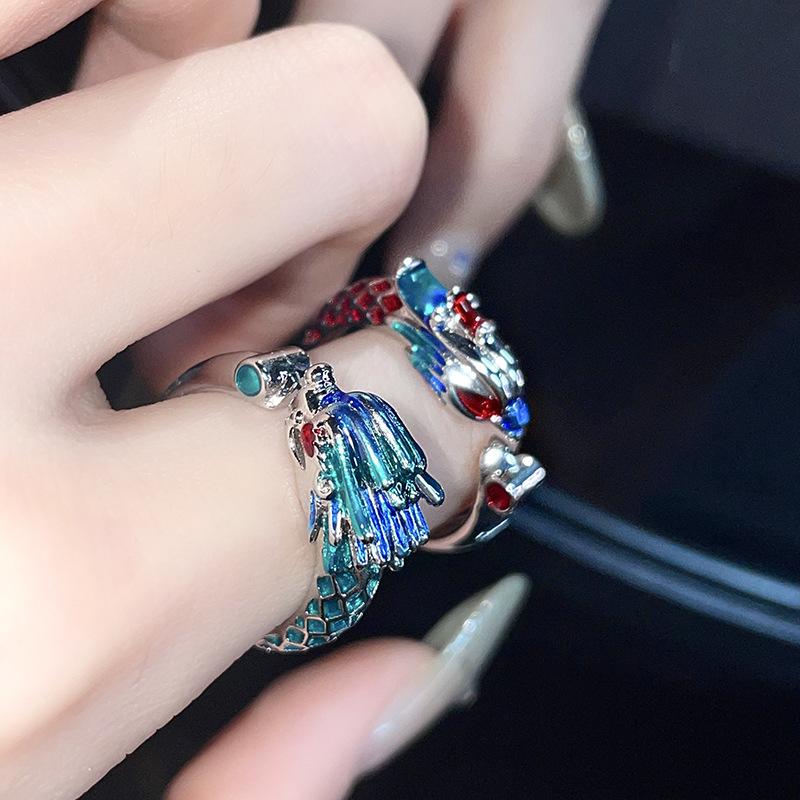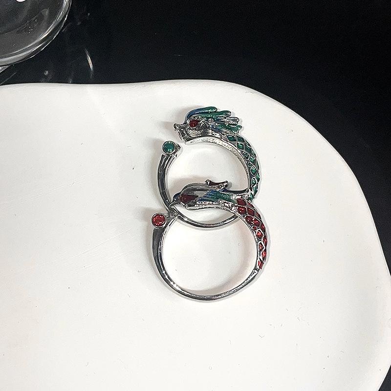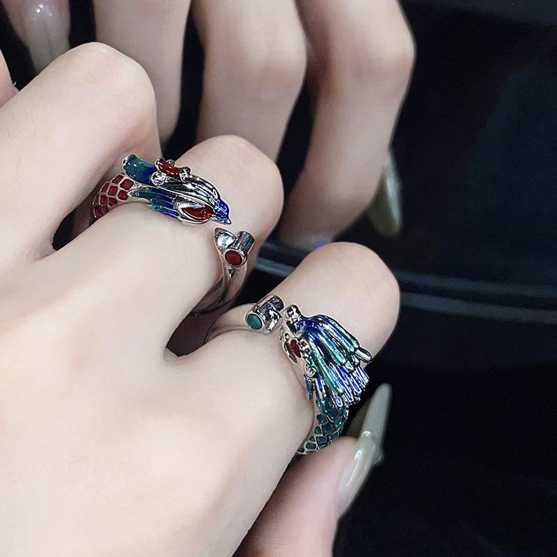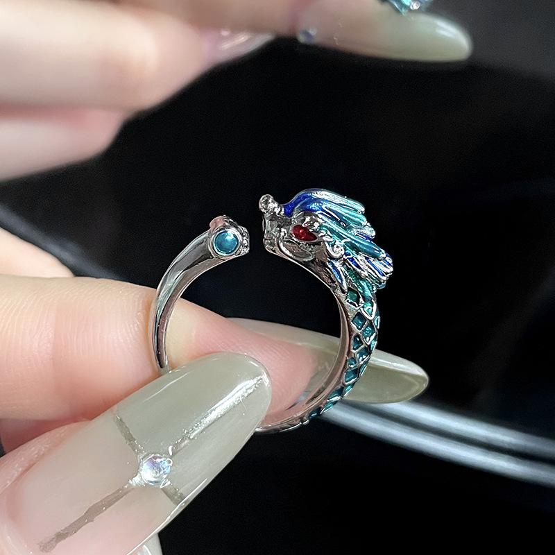 Anillo Dragón y Fénix Anillo para Pareja Diseño Nicho Vintage Agresivo Personalizado Marea Nacional Anillo Azul Quemado Regalo de San Valentín
