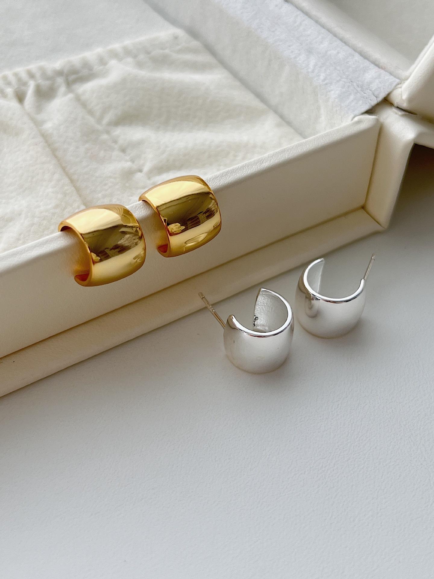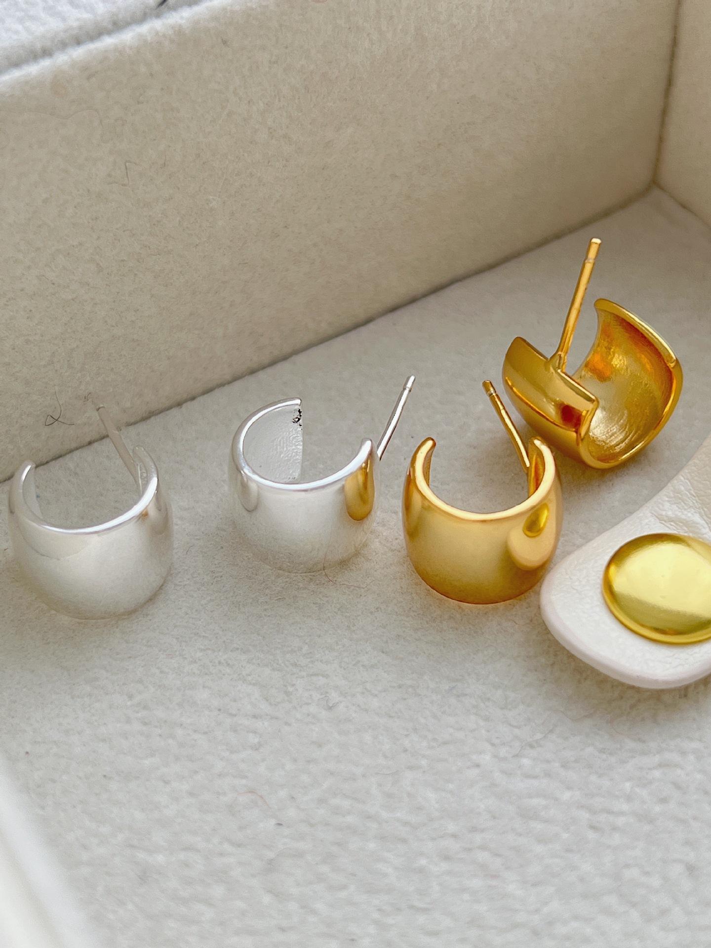 Pendientes de estilo coreano con temperamento simple en forma de C, chapados en oro, de moda minimalista, de semicírculo, con aguja de plata S925, cómodos.