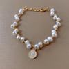 Pulsera de perlas de agua dulce extraterrestre para mujer, diseño de moneda barroca, pulsera de perlas enrolladas en alambre de cobre, regalo para novia