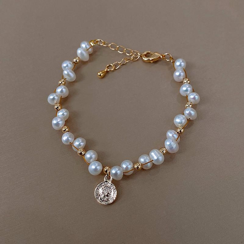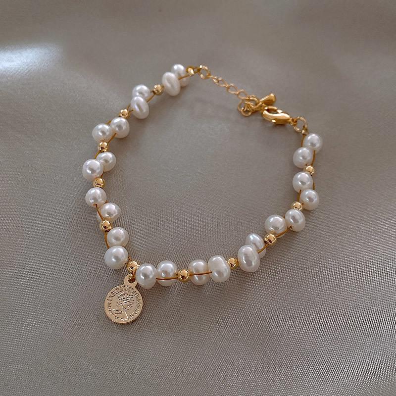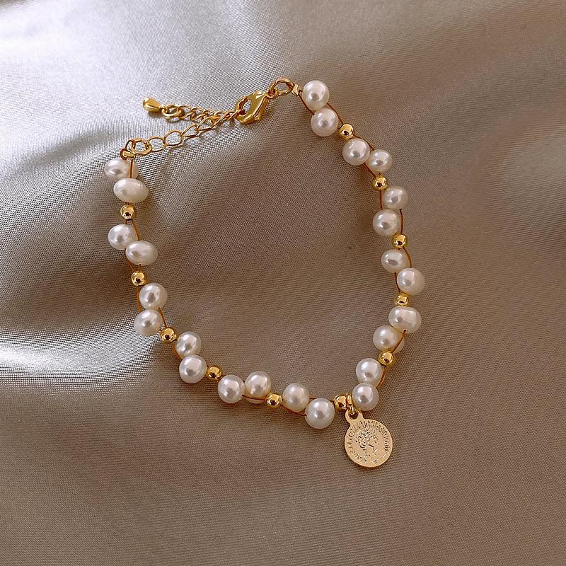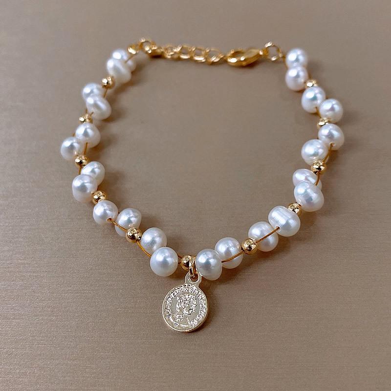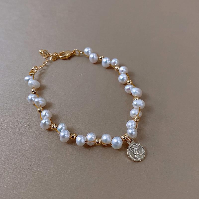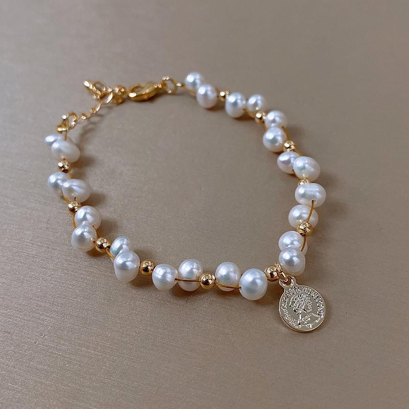 Compra Pulsera de perlas de agua dulce extraterrestre para mujer, diseño de moneda barroca, pulsera de perlas enrolladas en alambre de cobre, regalo para novia al por mayor en Joom.pro
