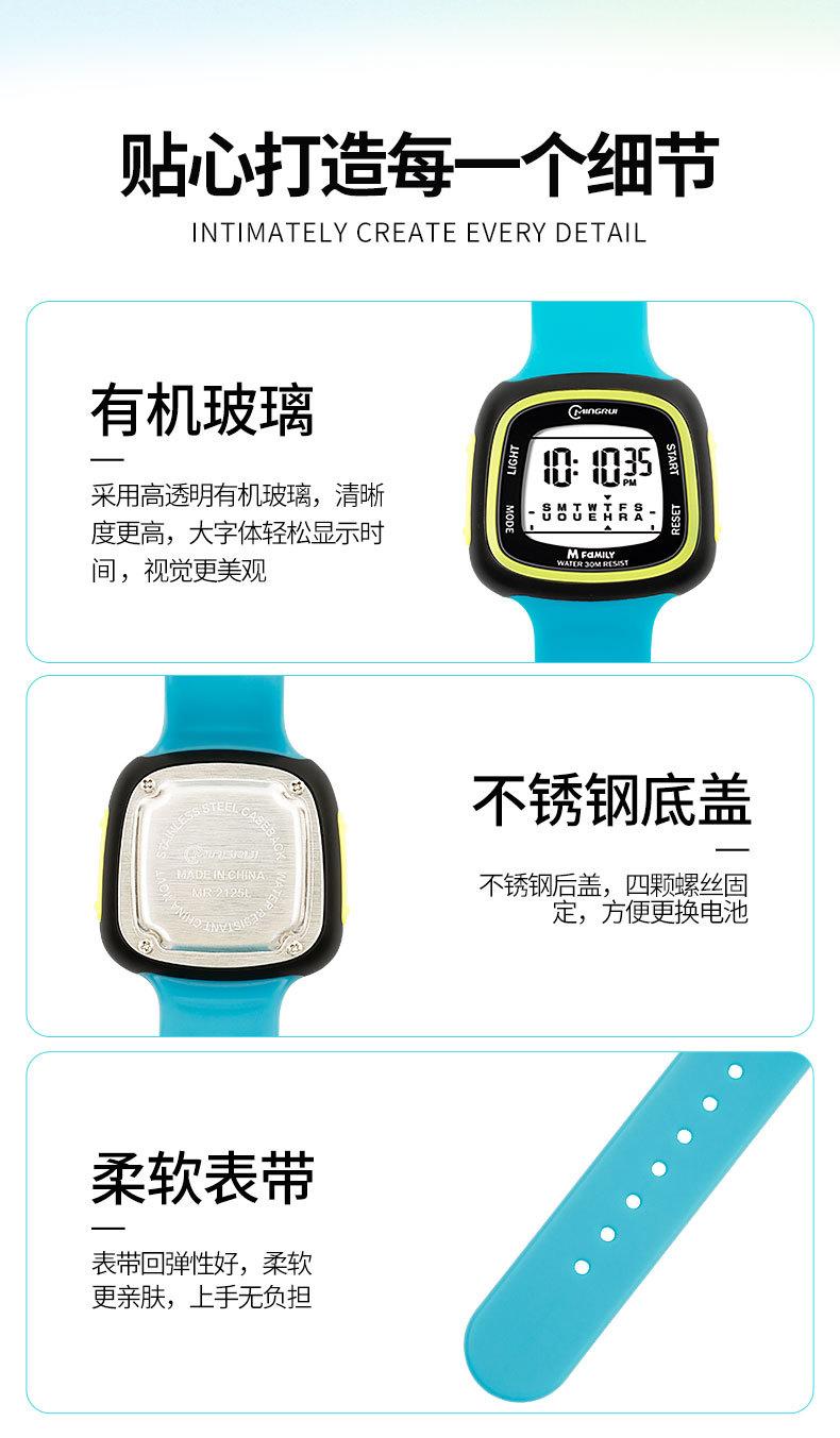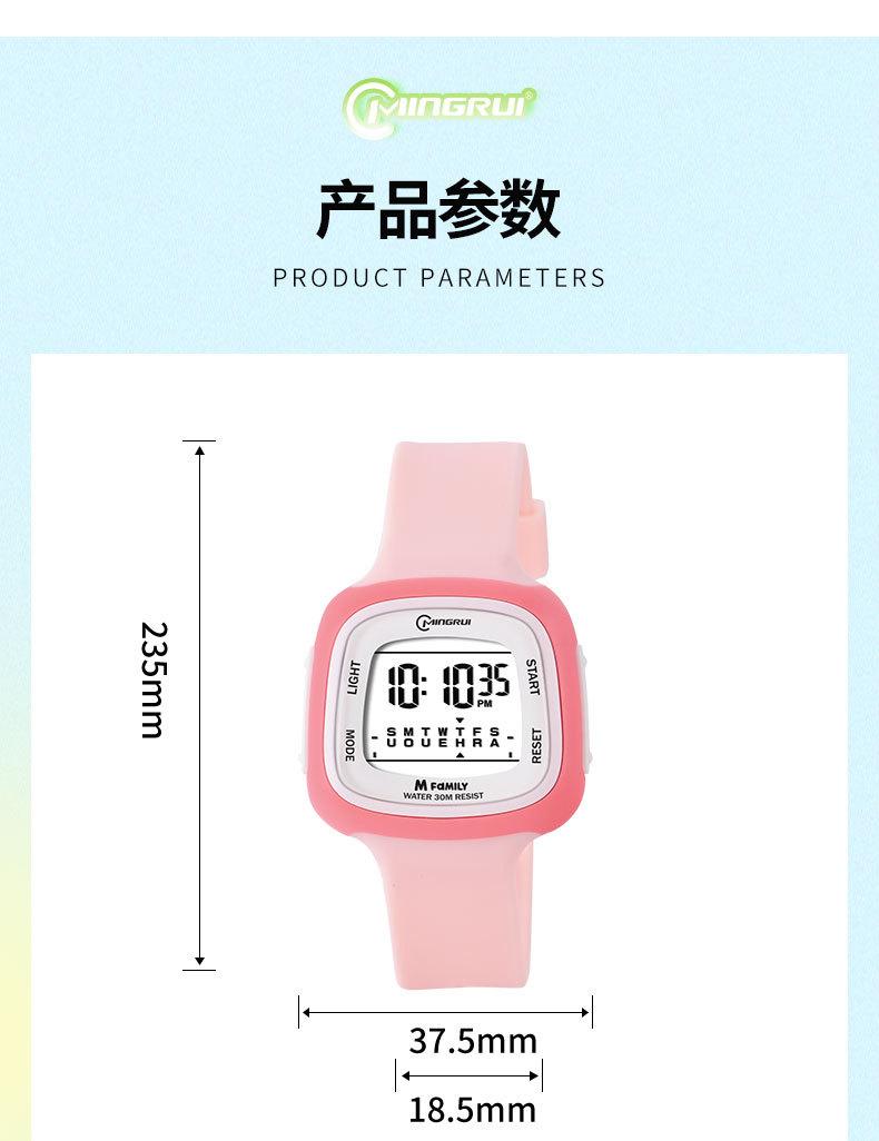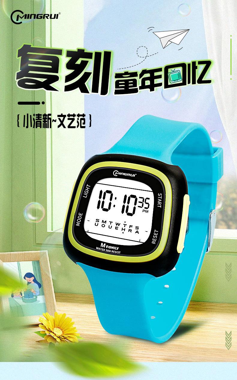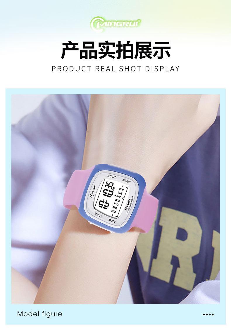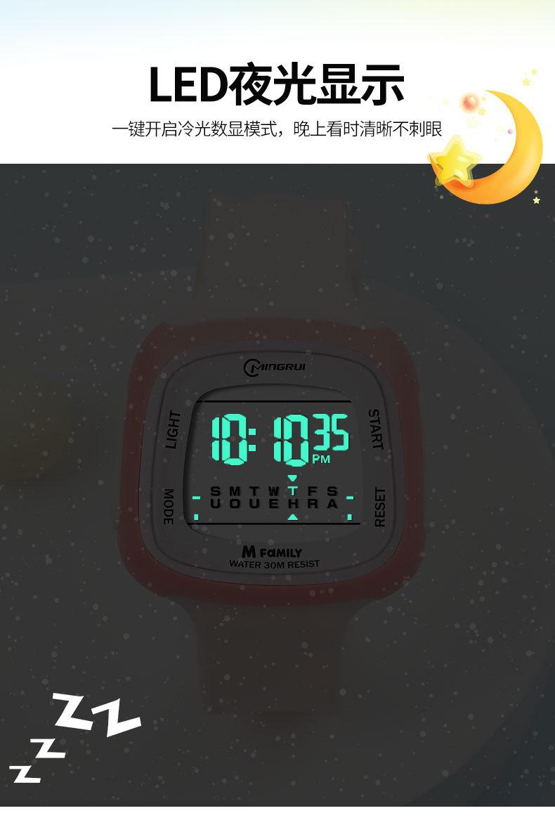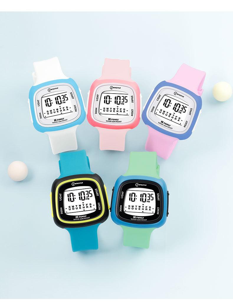 Reloj electrónico Mingrui Fashion Square, resistente al agua, con dibujos animados, para estudiantes masculinos y femeninos, reloj despertador luminoso con temporizador para niños.