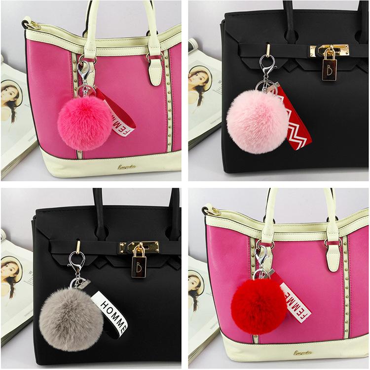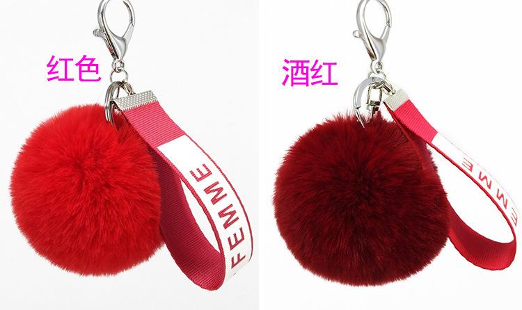 | |  | | Nuevo llavero con colgante de bola de pelo de conejo Rex de imitación con borlas frescas de 20 colores transfronterizos, colgante para bolso de mujer, regalo creativo |