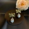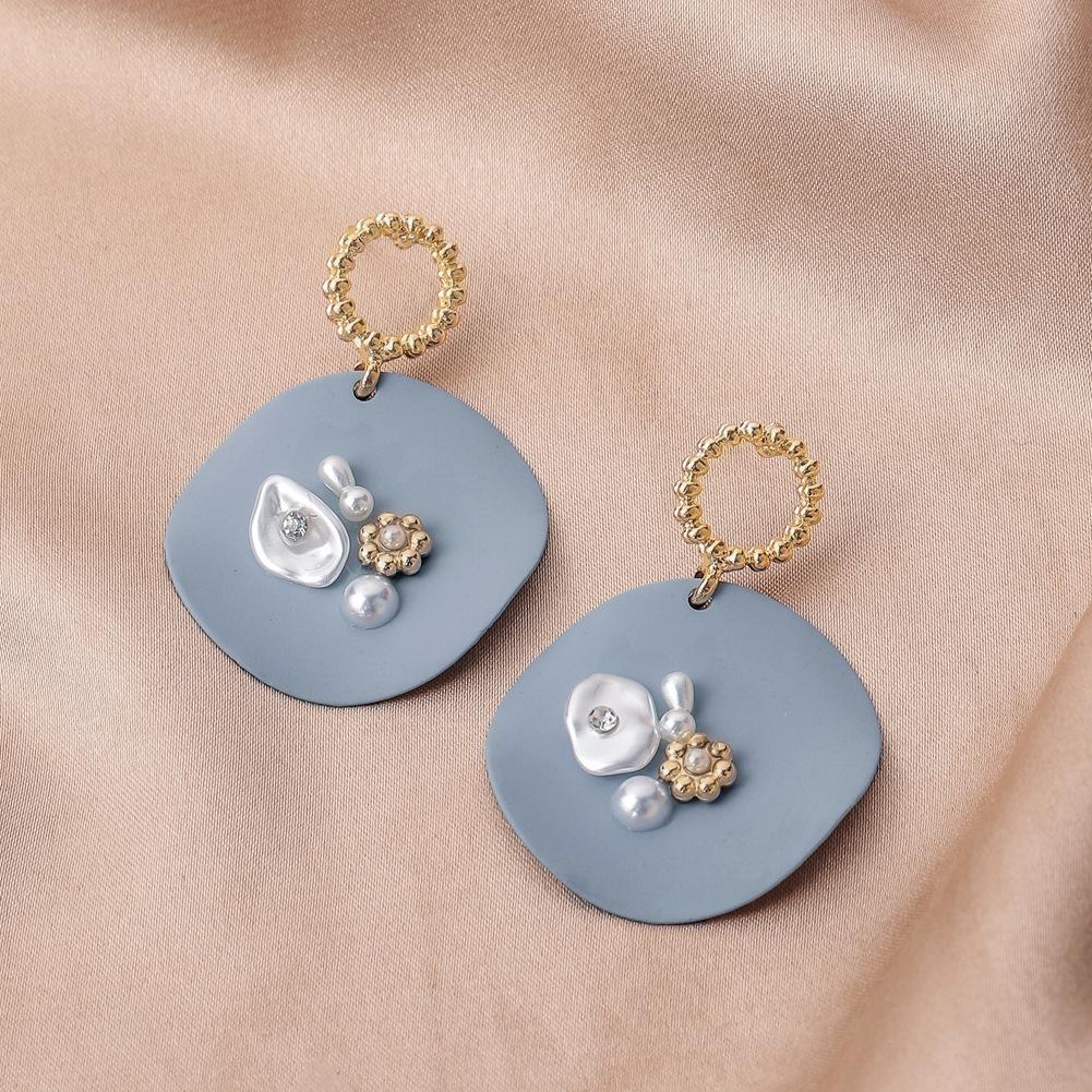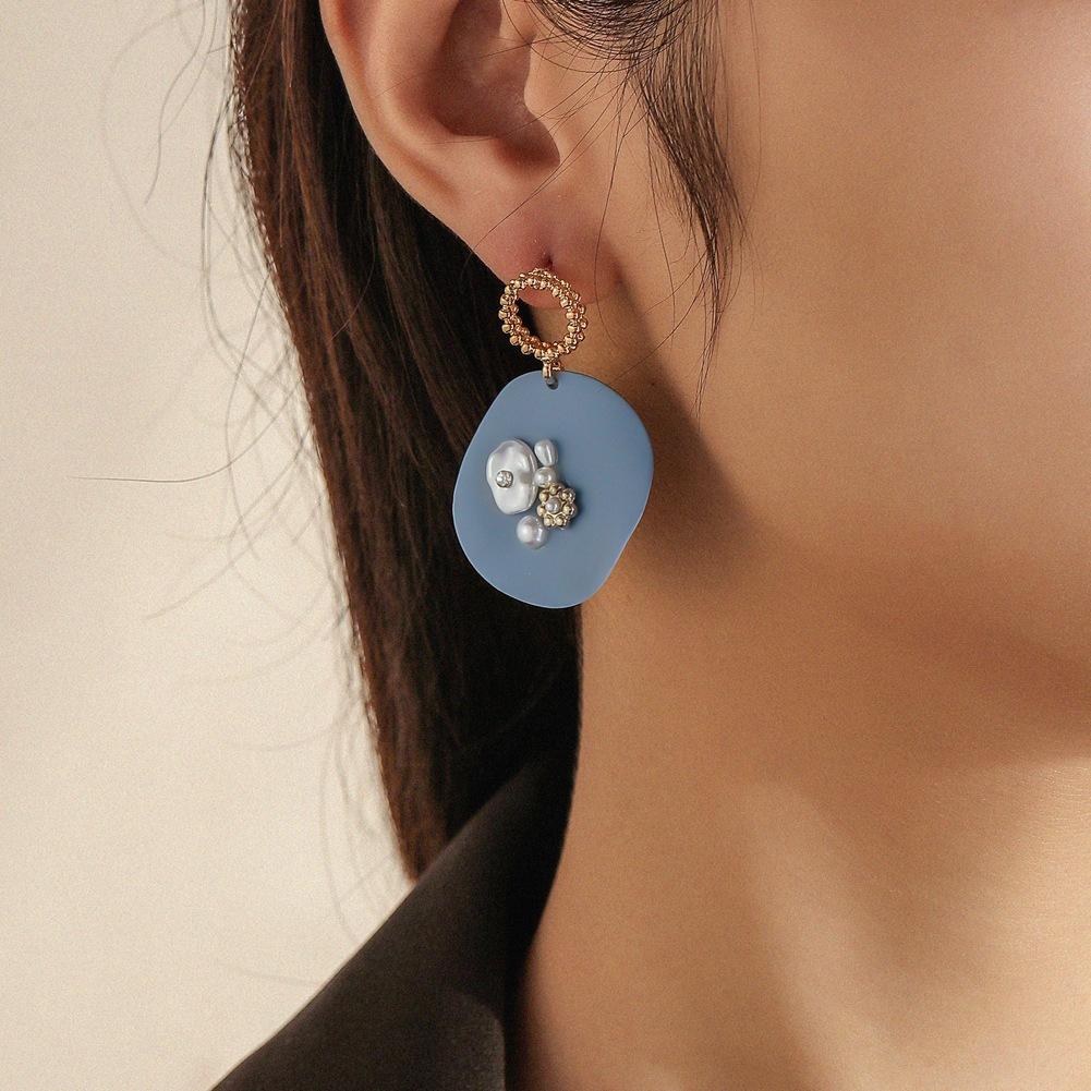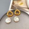 Nuevos pendientes de flor de perla con incrustaciones geométricas redondas irregulares, pendientes de nicho sencillos y elegantes, accesorios vintage de moda.
