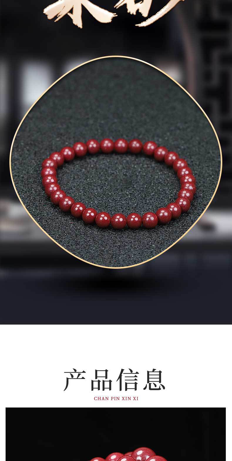 Pulsera de un solo anillo con cuentas redondas de cinabrio natural de alta fidelidad y alto contenido, arena dorada púrpura, al por mayor, para mujer, pulsera con cuentas hecha a mano para hombre
