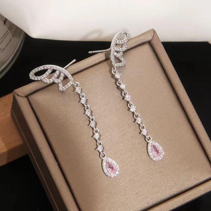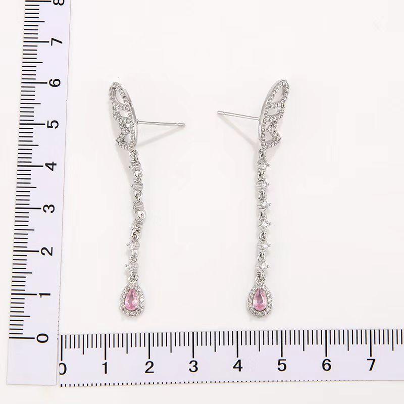 Pendientes de circonita rosa con borlas de alas con microincrustaciones, pendientes de súper hada, pendientes de celebridades de Internet, pendientes de temperamento femenino, diseño de personalidad, pendientes largos de moda