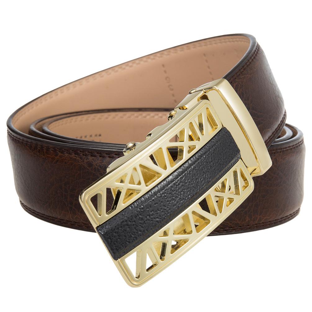 Hebilla de pistola profunda con patrón de martillo de bronce + cinturón negro/marrón
