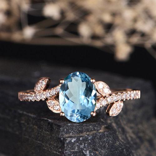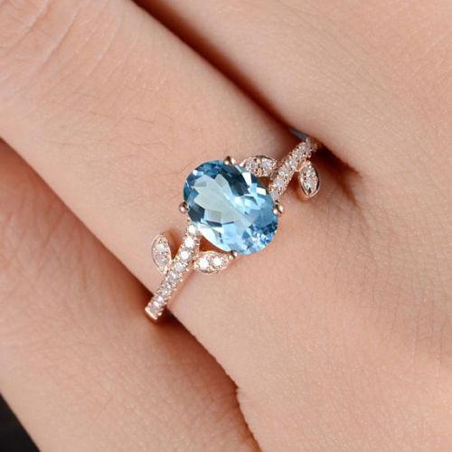 Zhenrong deseo explosión moda anillo oro rosa simple tendencia flor anillo topacio suizo azul