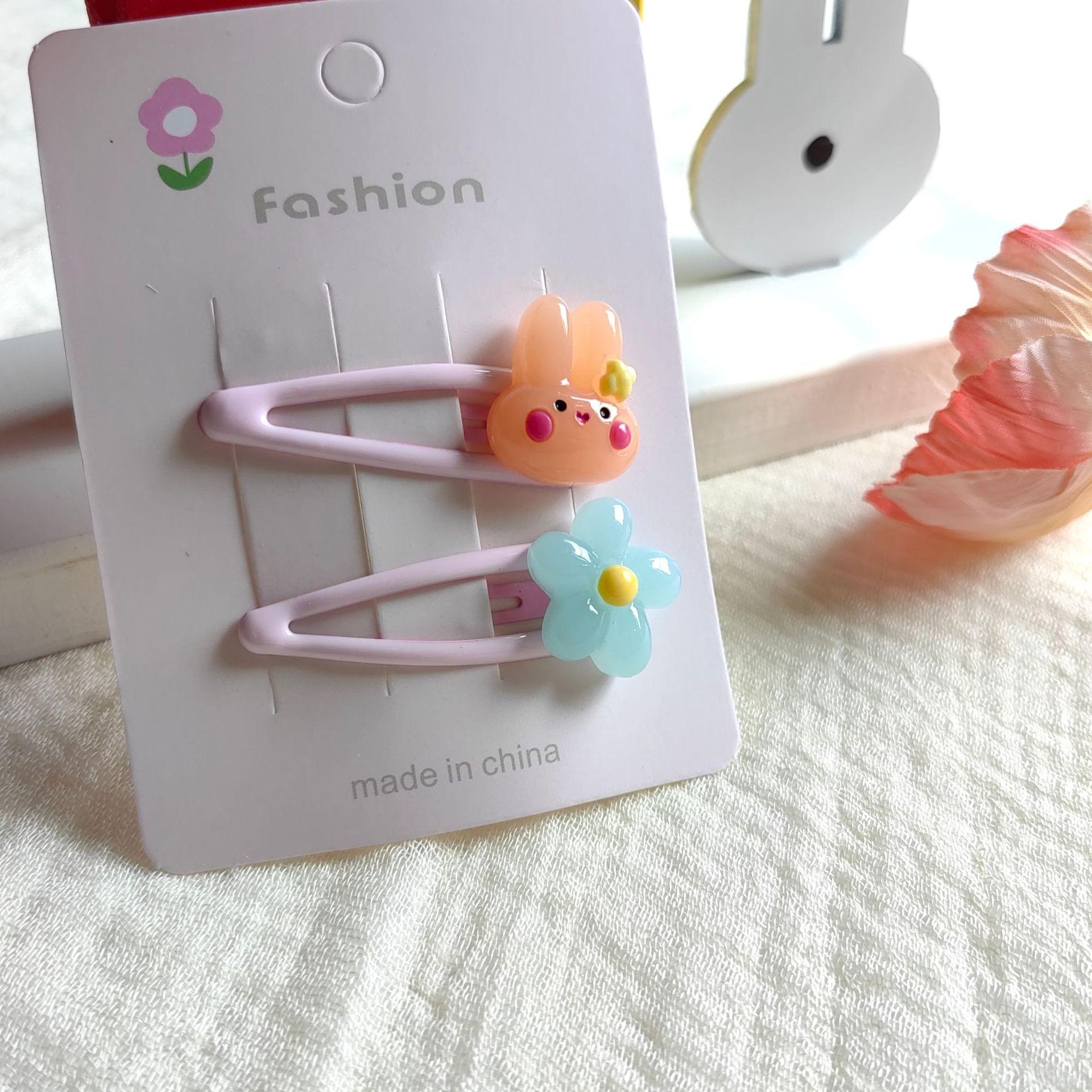 Horquilla pequeña para niña con diseño de conejo de dibujos animados y flores, pinza lateral para bebé, bonita horquilla para niña pequeña, pinza BB, flequillo, accesorios para el cabello