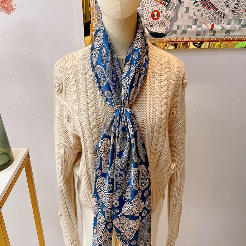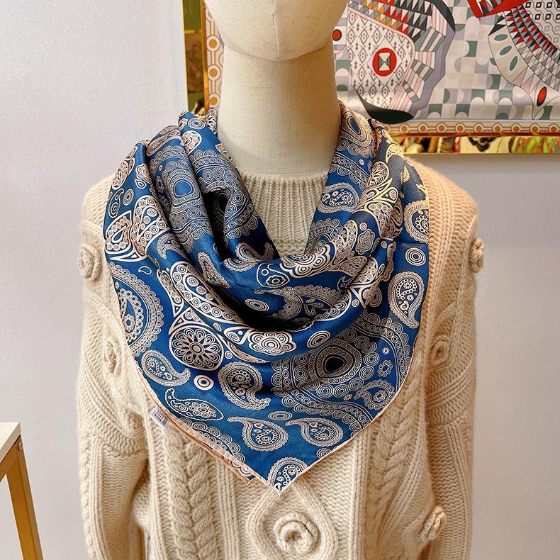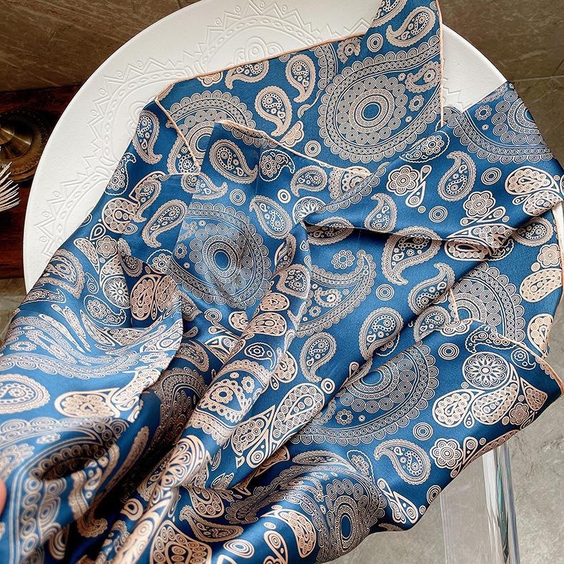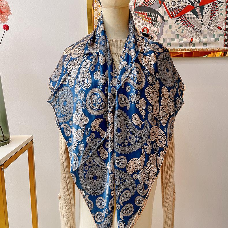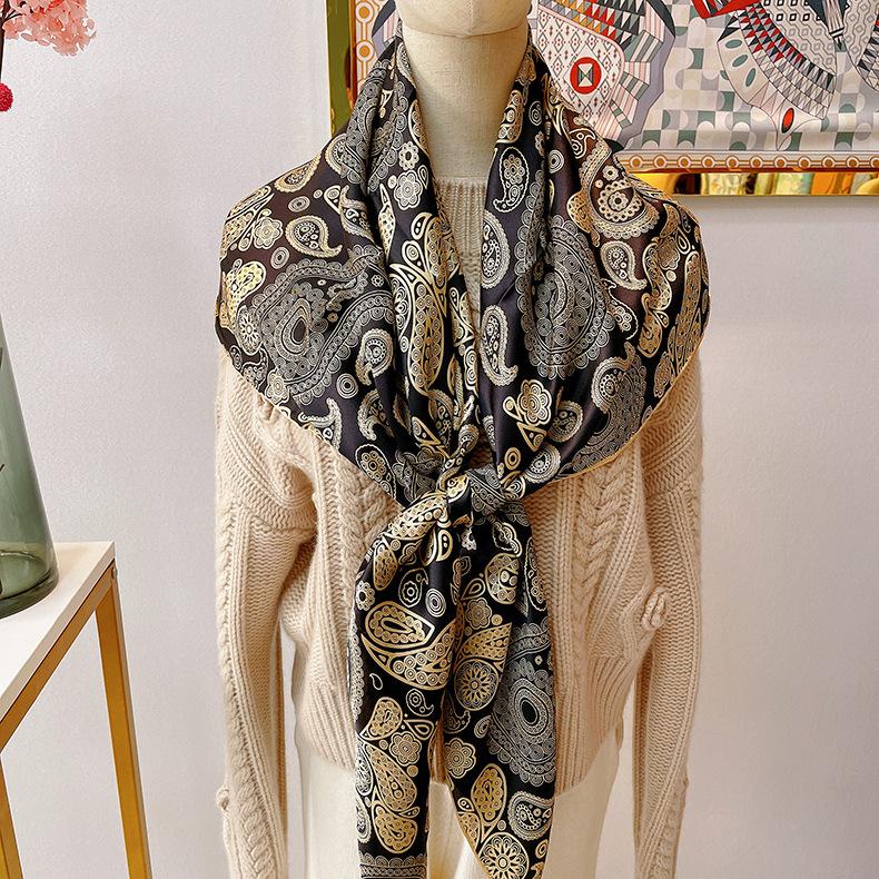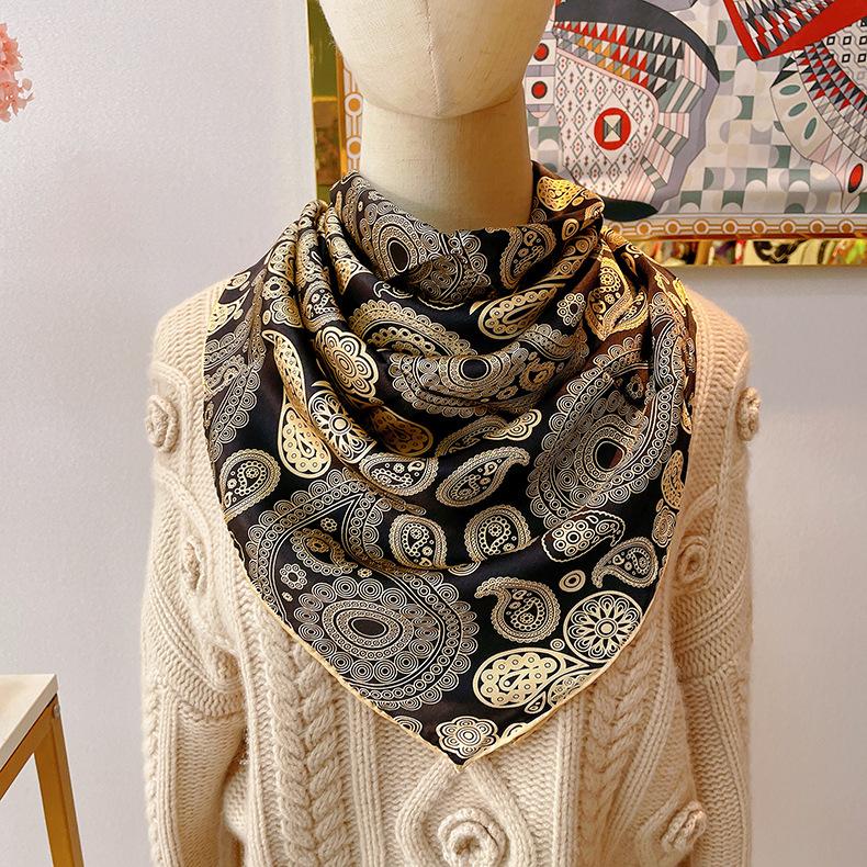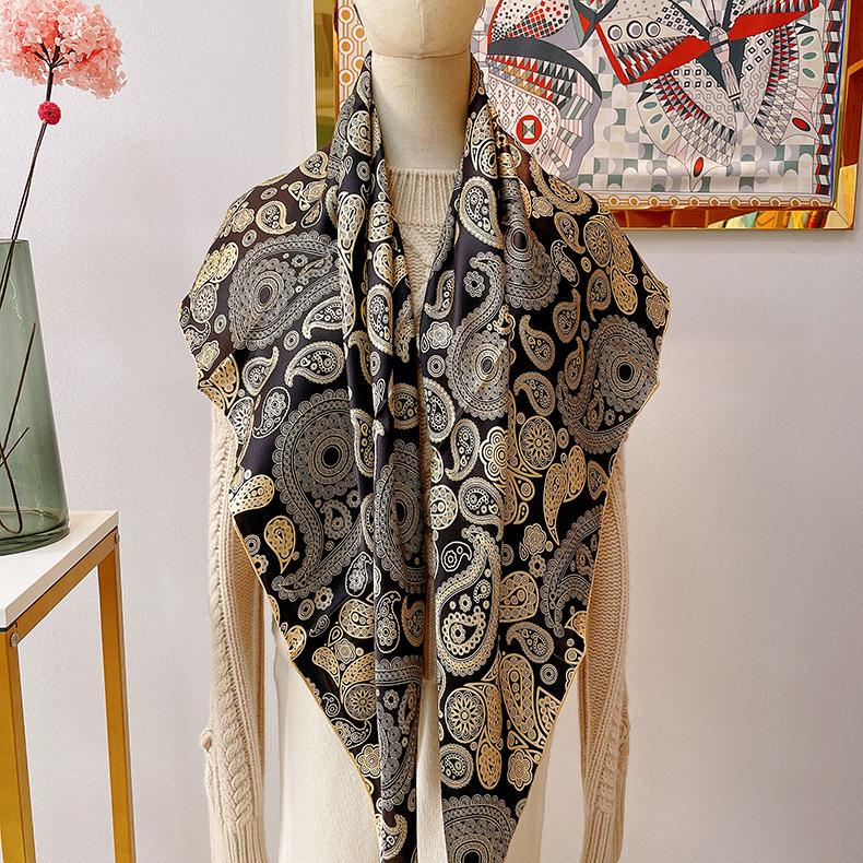 Bufanda de Satén de Seda 110cm Cuadrada Grande Bufanda de Seda de Morera Chal para Mujer Bufanda Cuadrada Flor Espiral Anacardo Venta al por Mayor
