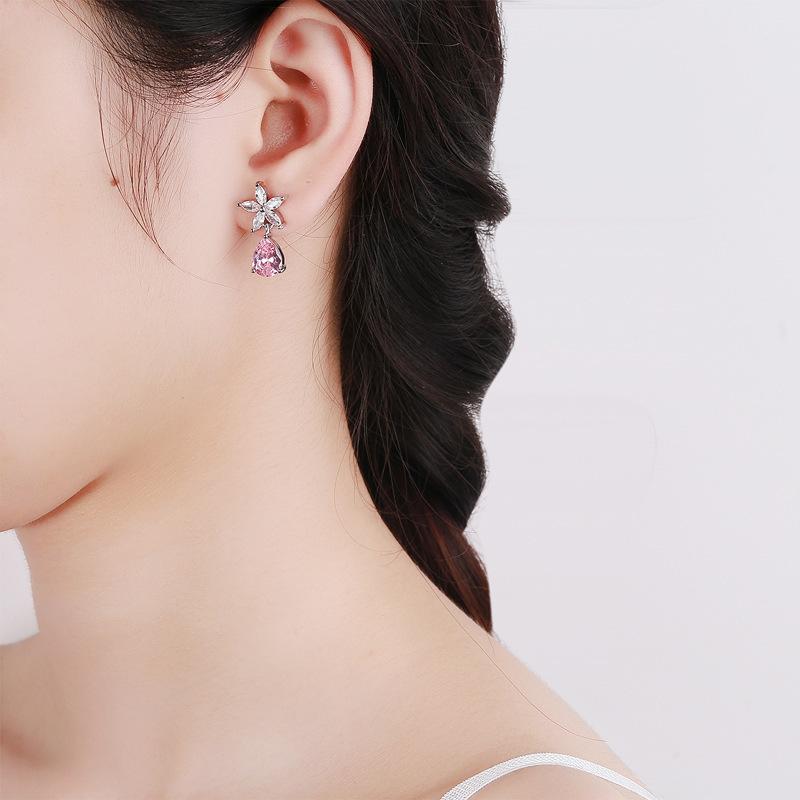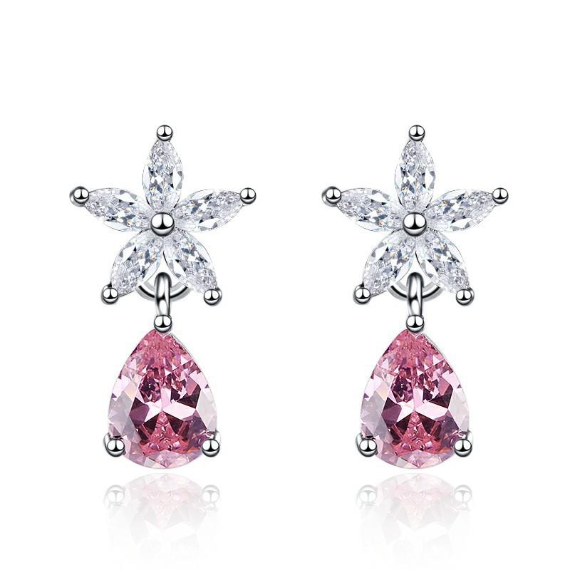 Nueva versión coreana de los pendientes de flor de gota de agua, pendientes de joyería de moda Joker con incrustaciones de circonita AAA, accesorios de venta directa