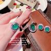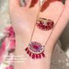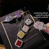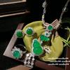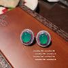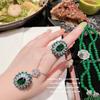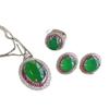 Collar de Gema Denier Color Esmeralda Pintura al Óleo Vintage Chapado en Oro de 18K Aretes y Anillo de Zircón Rojo Paloma Multifacetado